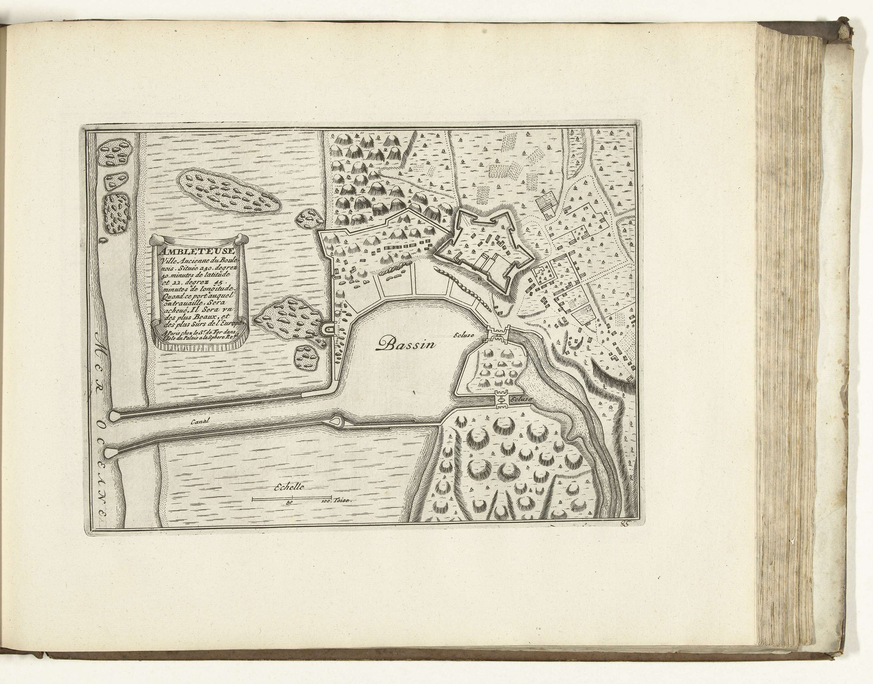 Plattegrond van de versterkingen om de Franse stad Ambleteuse. Plaat nr. 85 in deel IV van het prentwerk: Les Forces de l'Europe, Asie, Afrique et Amerique ... Comme aussi les Cartes des Côtes de France et d'Espagne uit 1726, dit eerste deel met 238 met de hand genummerde platen van vermaarde sterke steden en vestingen ...