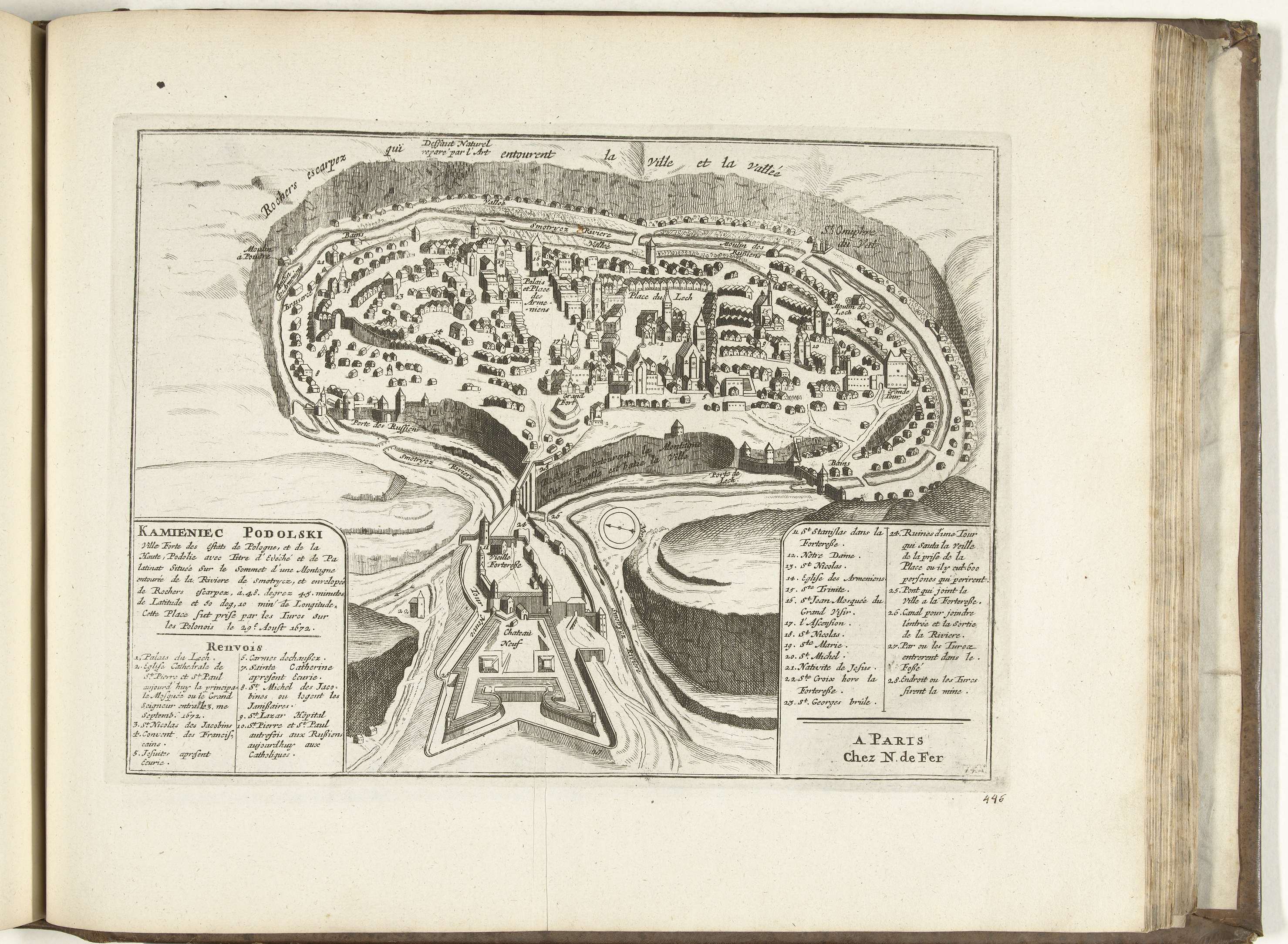 Plattegrond van de Poolse stad Kamien Pomorski. Plaat nr. 446 in deel XVIII van het prentwerk: Les Forces de l'Europe, Asie, Afrique et Amerique ... Comme aussi les Cartes des Côtes de France et d'Espagne uit 1726, dit tweede deel met 271 met de hand genummerde platen van vermaarde sterke steden en vestingen in het ...