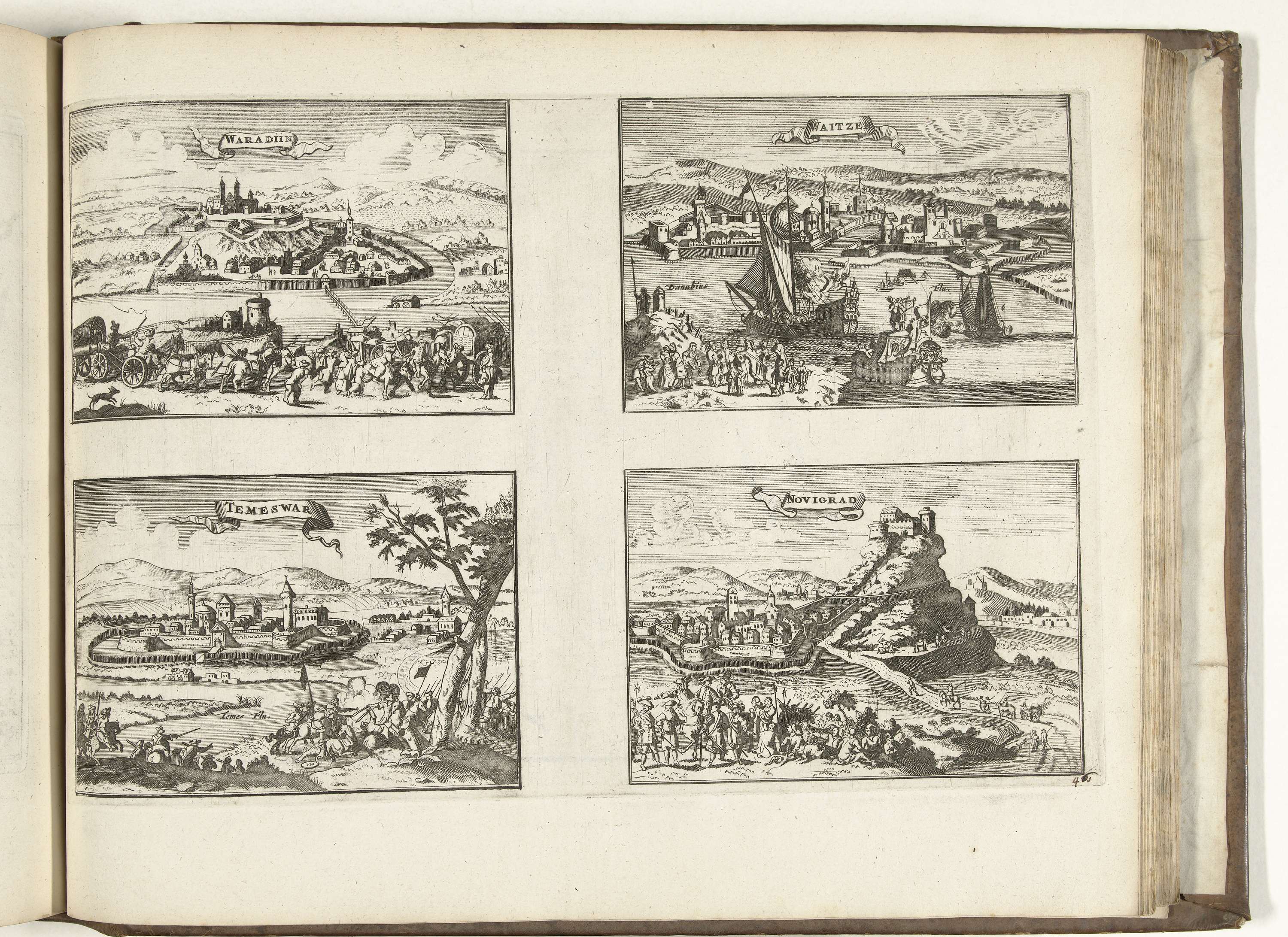 Gezichten op Waradiin, Vác, Temesvár en Novigrad, 1726