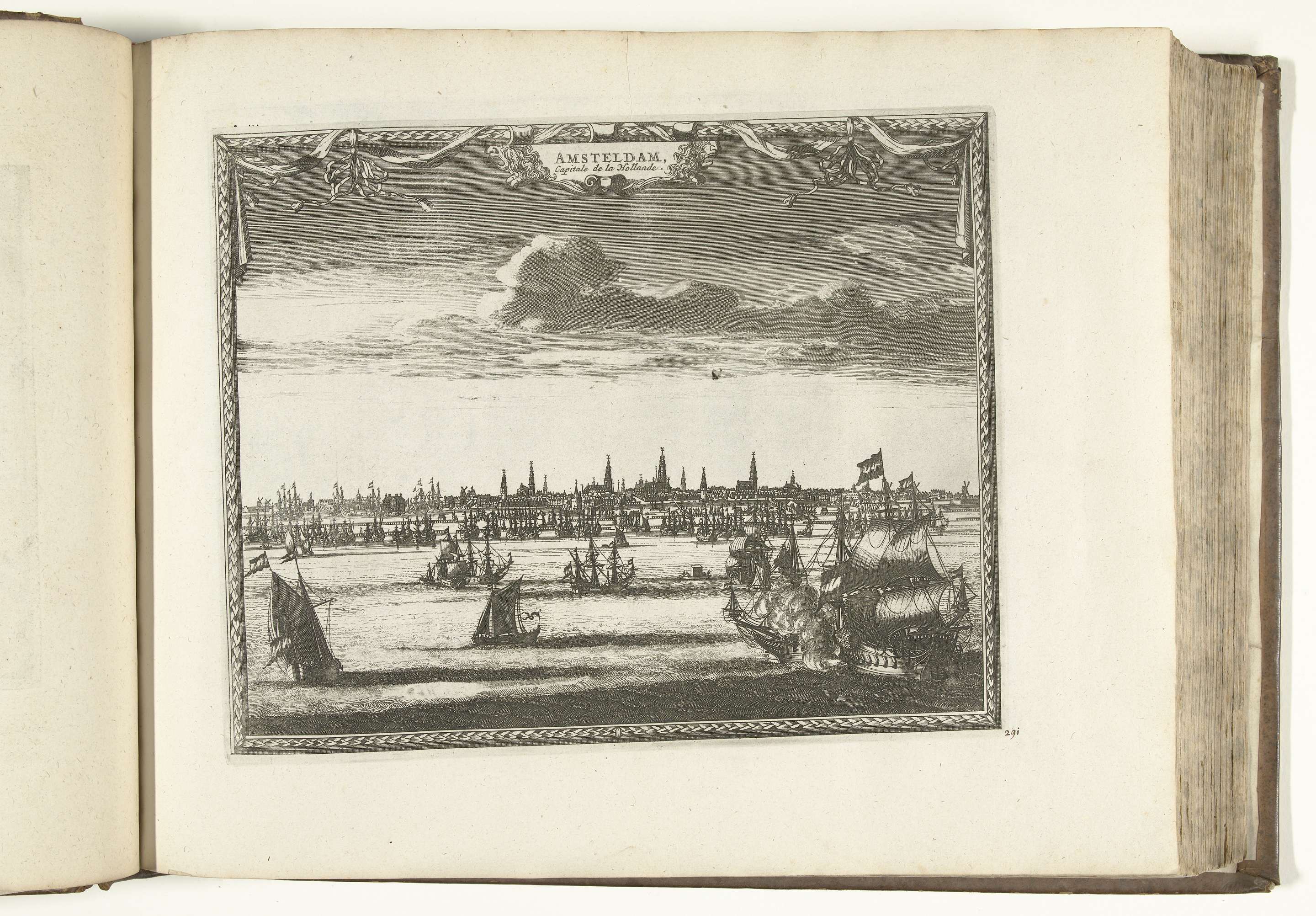 Gezicht op Amsterdam. Plaat nr. 291 in deel XIII van het prentwerk: Les Forces de l'Europe, Asie, Afrique et Amerique ... Comme aussi les Cartes des Côtes de France et d'Espagne uit 1726, dit tweede deel met 271 met de hand genummerde platen van vermaarde sterke steden en vestingen in het kader van de Spaanse ...