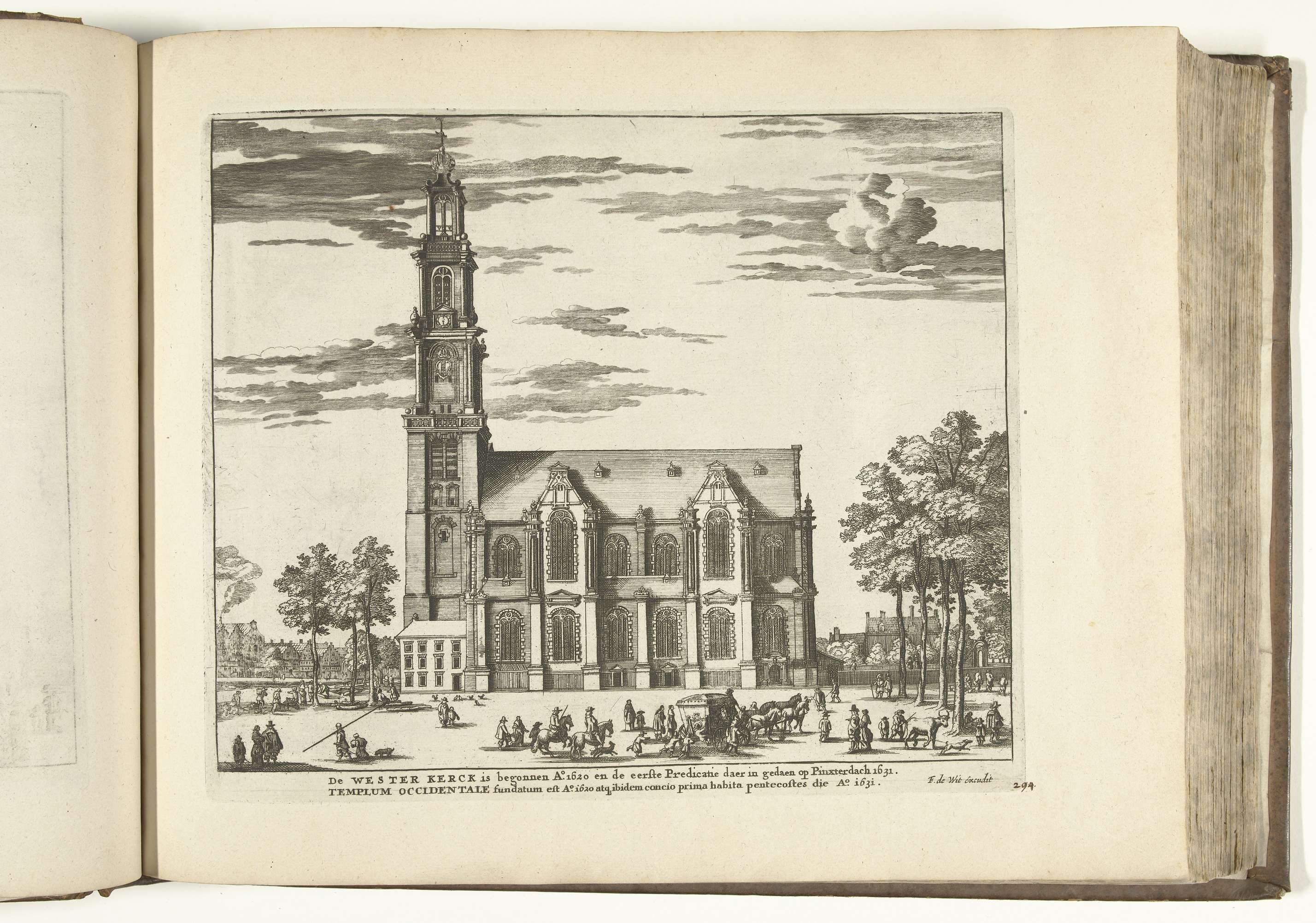 Gezicht op de Westerkerk te Amsterdam. Plaat nr. 294 in deel XIII van het prentwerk: Les Forces de l'Europe, Asie, Afrique et Amerique ... Comme aussi les Cartes des Côtes de France et d'Espagne uit 1726, dit tweede deel met 271 met de hand genummerde platen van vermaarde sterke steden en vestingen in het kader ...