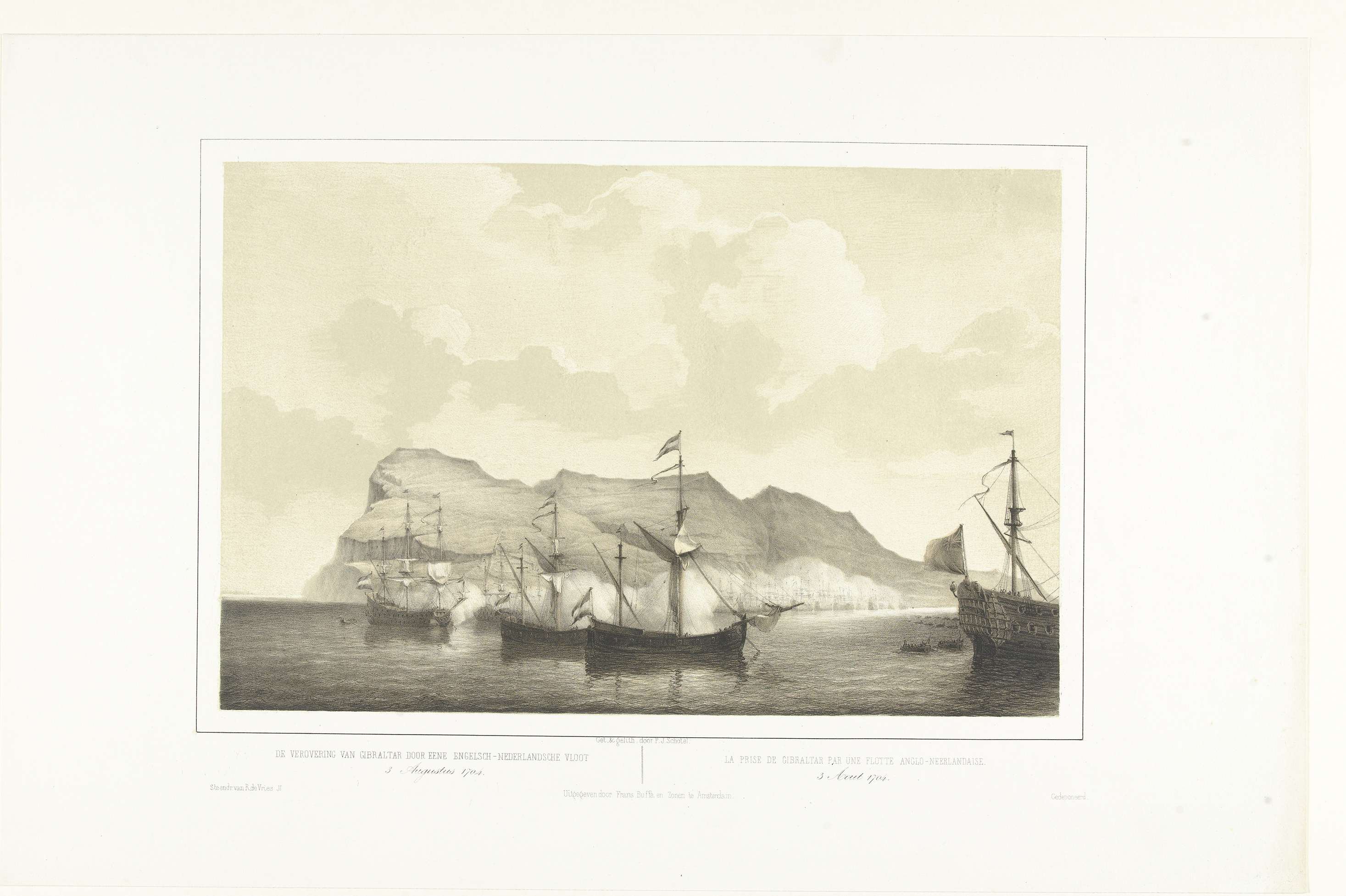 De verovering van Gibraltar door een gecombineerd Engels-Nederlandse vloot, 3 augustus 1704. Zeeslag voor de rots van Gibraltar.