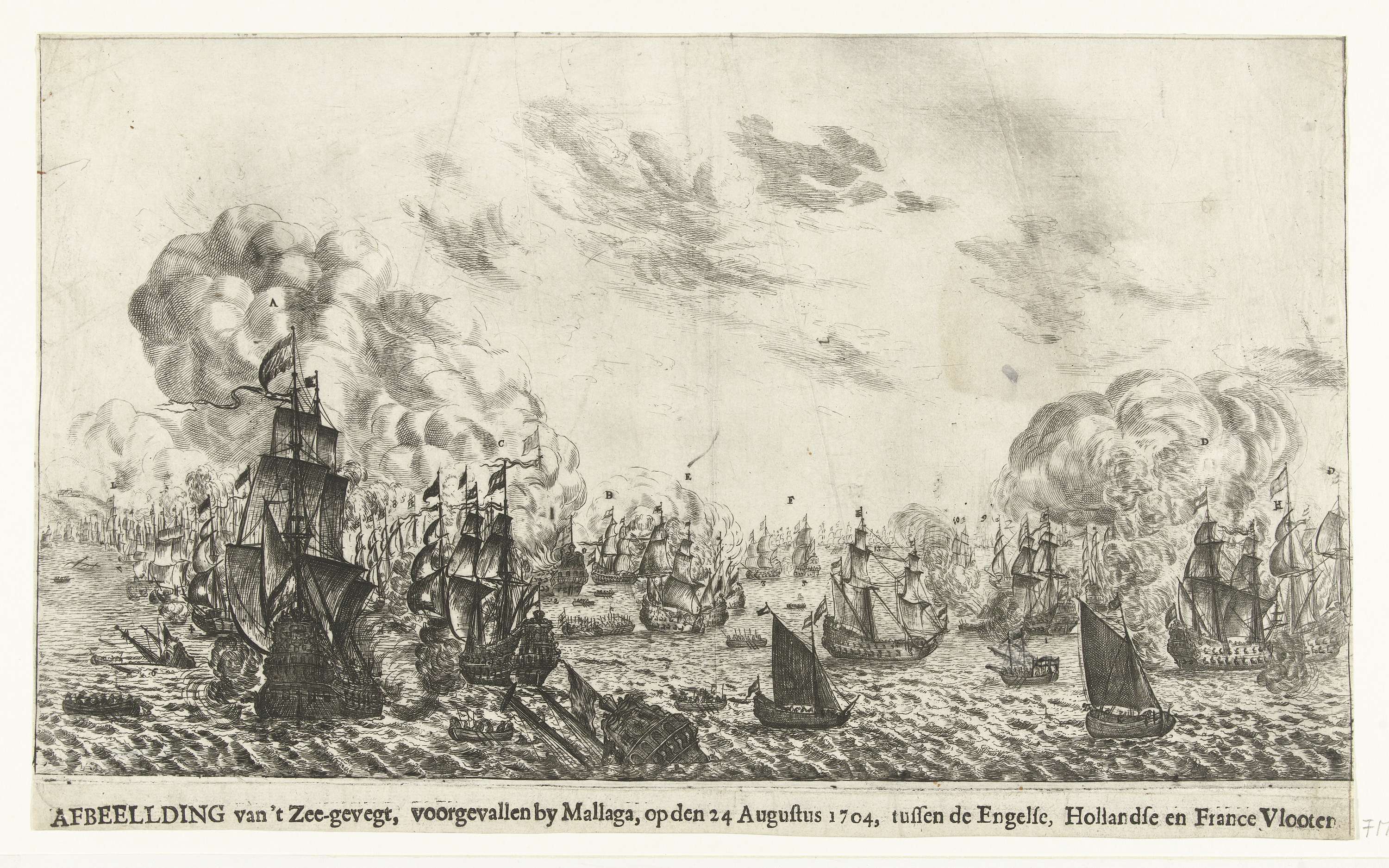 Zeeslag bij Malaga waarbij een gecombineerde Engels-Staatse vloot onder Rooke en Callenburgh de overwinning behaalde op de Fransen, 24 augustus 1704.