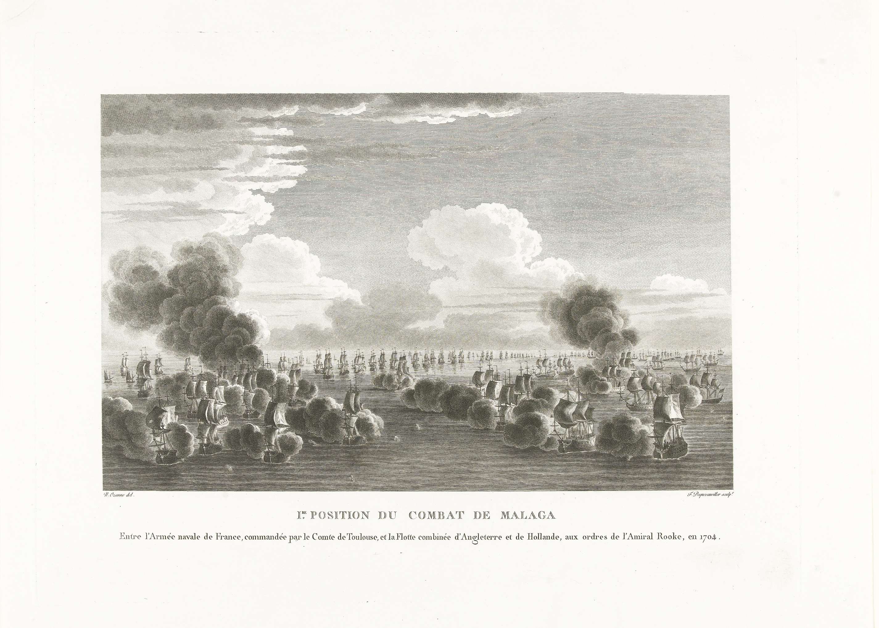 Zeeslag bij Malaga waarbij een gecombineerde Engels-Staatse vloot onder Rooke en Callenburgh de overwinning behaalde op de Fransen onder de graaf van Toulouse, 24 augustus 1704. Eerste voorstelling.