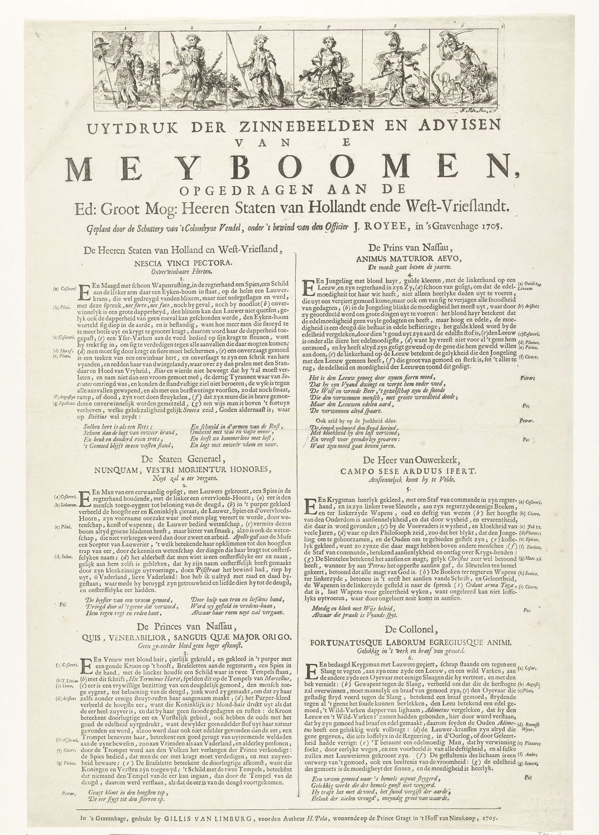 Uitleg van de zinnebeelden op de meibomen te Den Haag, 1705