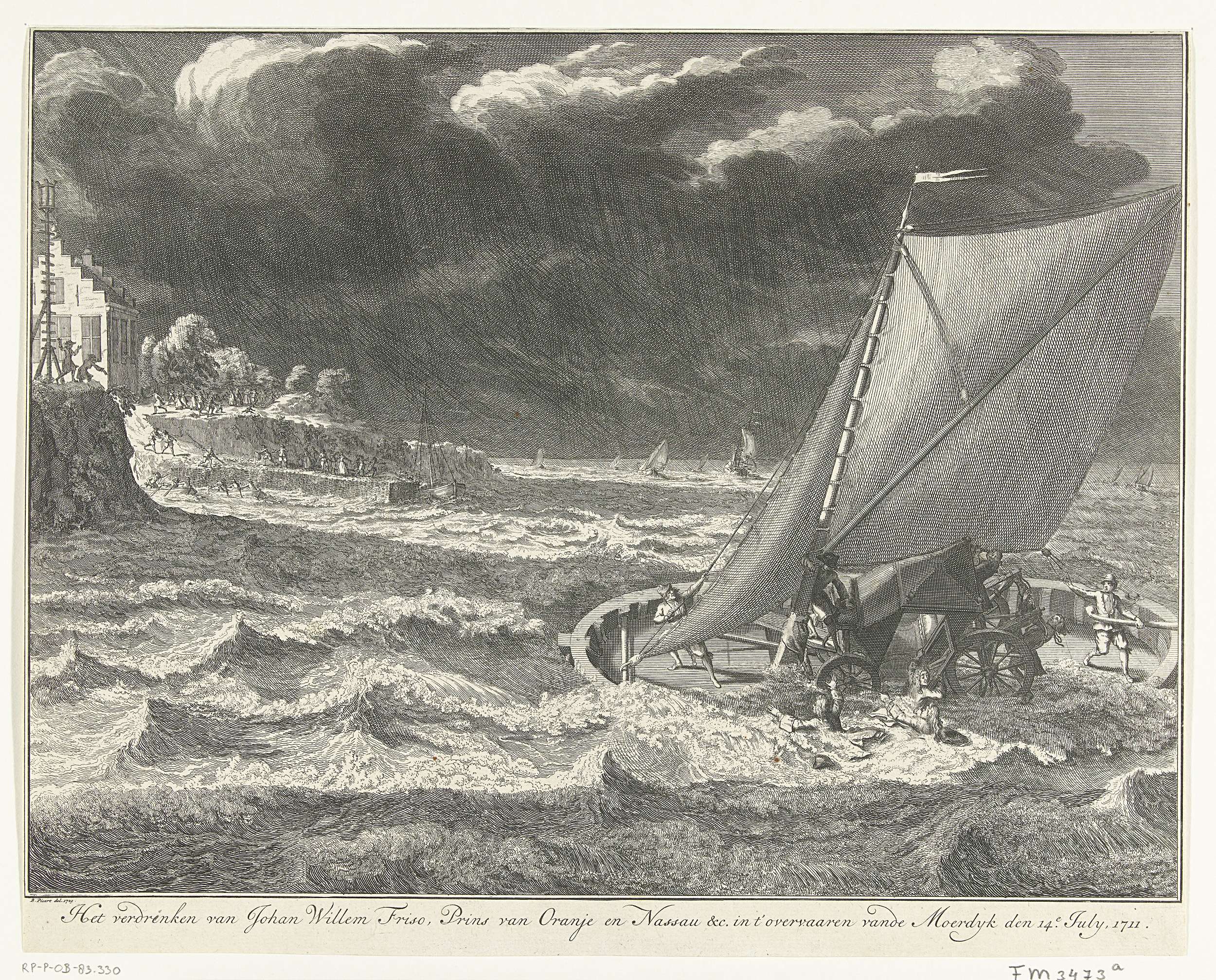 Johan Willem Friso, prins van Oranje-Nassau, verdrinkt tijdens het oversteken van de Moerdijk tijdens zwaar weer op 14 juli 1711. De boots waarop de koets van de prins staat kapseist en meerdere personen raken te water.