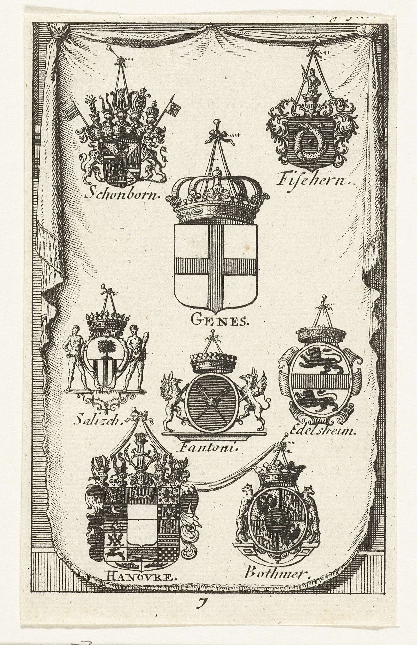 Wapens van de gevolmachtigden van Genua en Hannover bij de vredesonderhandelingen te Utrecht (nr. 7), 1712-1713