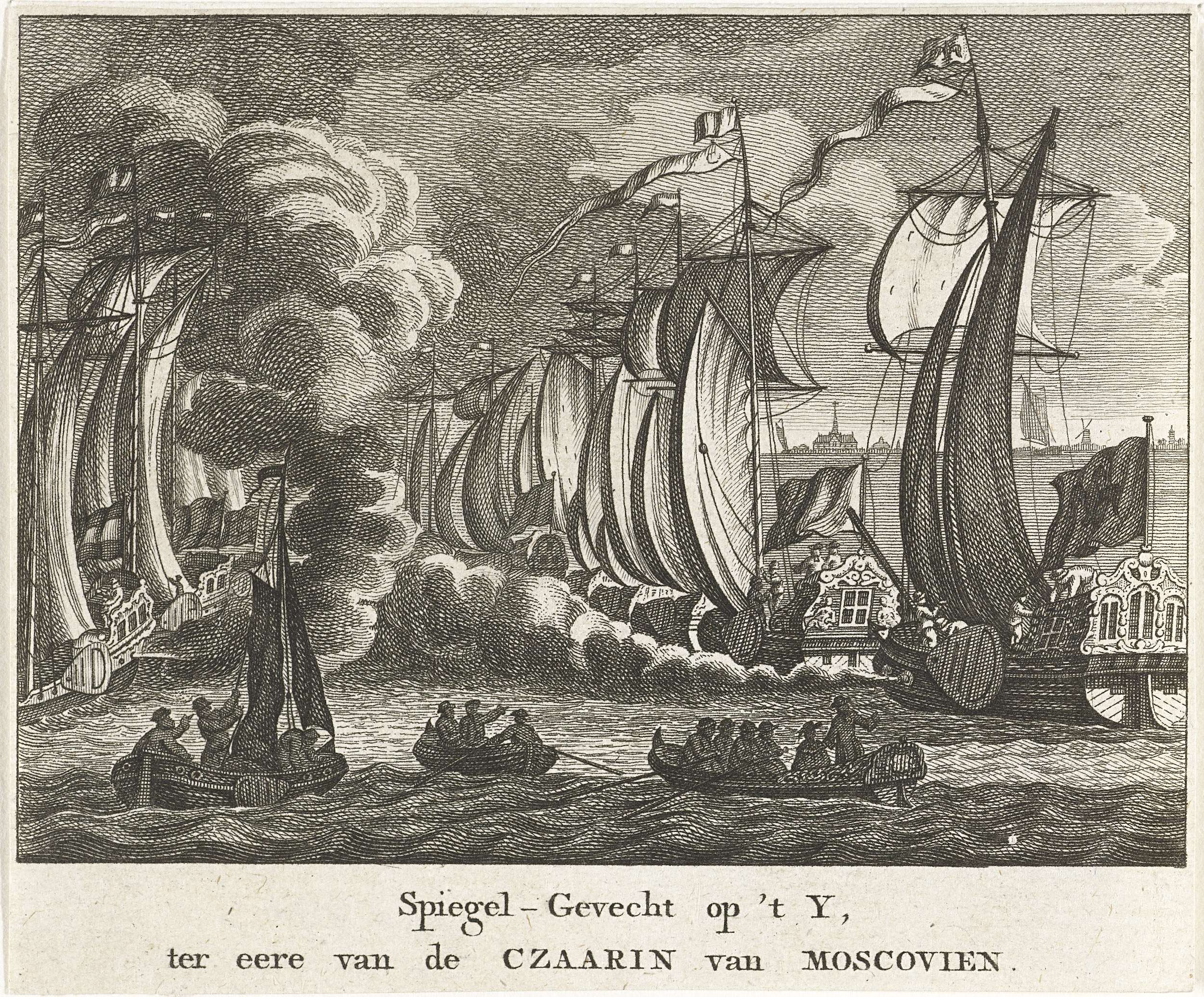 Spiegelgevecht gehouden op het IJ; waarschijnlijk in 1716 of 1717 ter ere van het bezoek van de Russische tsarina (Catharina I) of ter ere van het tweede bezoek van tsaar Peter de Grote in 1717.
