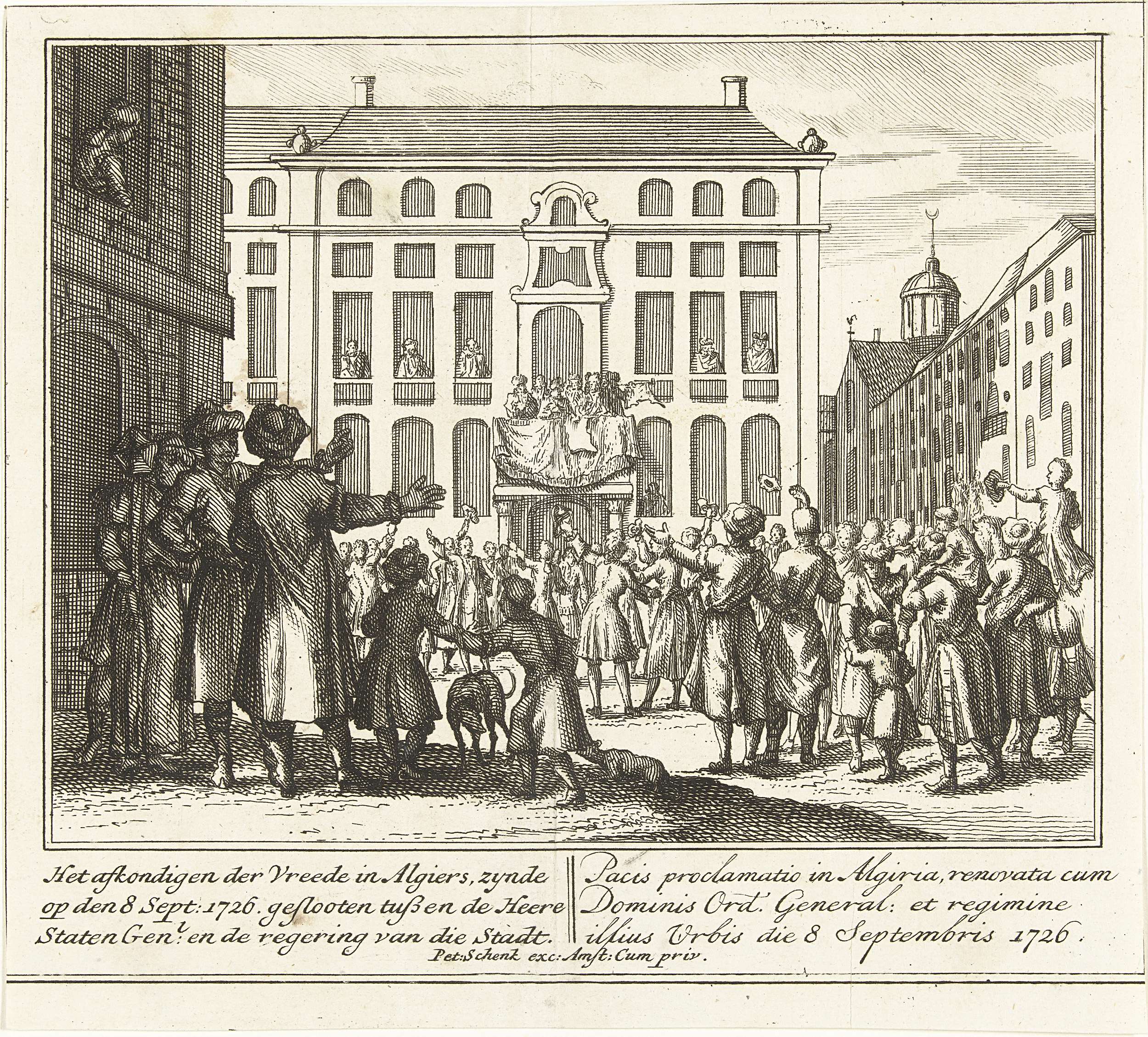 Het afkondigen van de vrede gesloten tussen de Staten-Generaal en het bestuur van Algiers, 1726