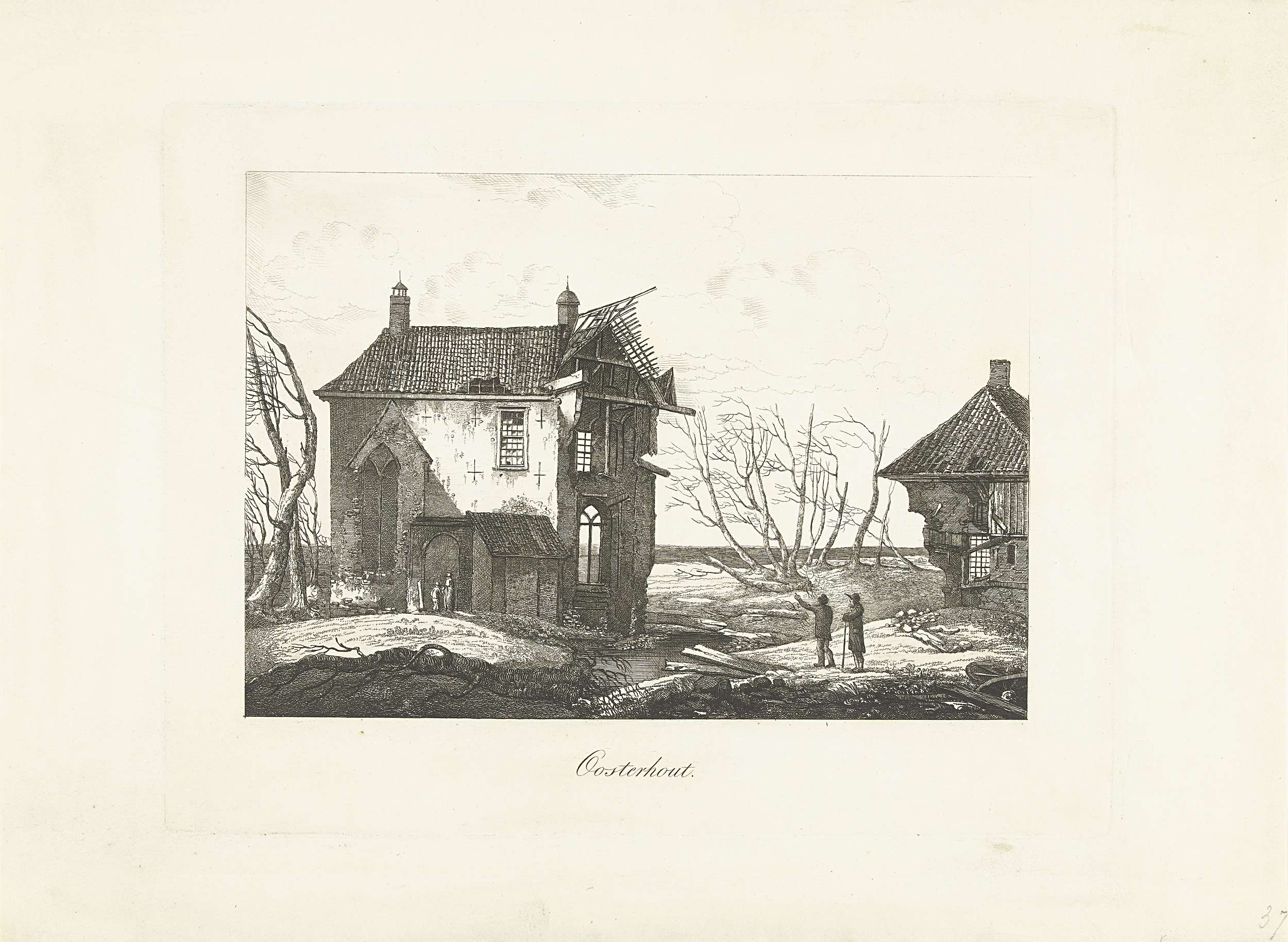 Ruïnes van een kerkje en huis te Oosterhout, 1732