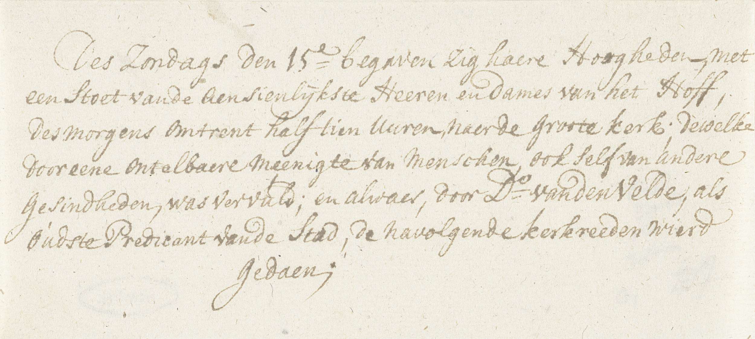 Handgeschreven beschrijving van het verblijf van Willem IV te Breda op zondag 15 september. Aansluitend op de intrede van Willem IV en zijn gemalin Anna van Hannover te Breda op 13 september 1737.