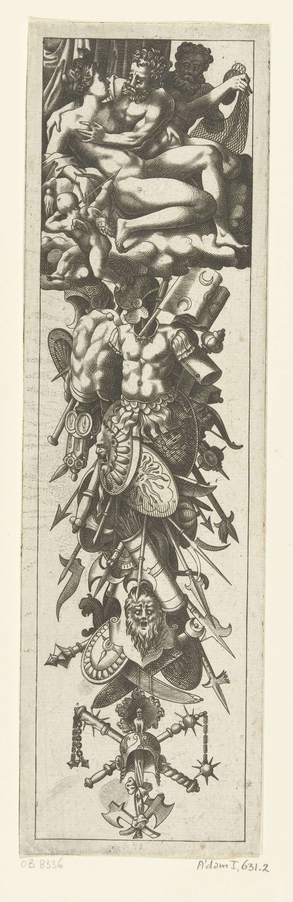 Op de wolk liggen Mars en Venus. Op de achtergrond staat Vulcanus gereed zijn net over hen heen te werpen. Uit serie van 6 bladen.