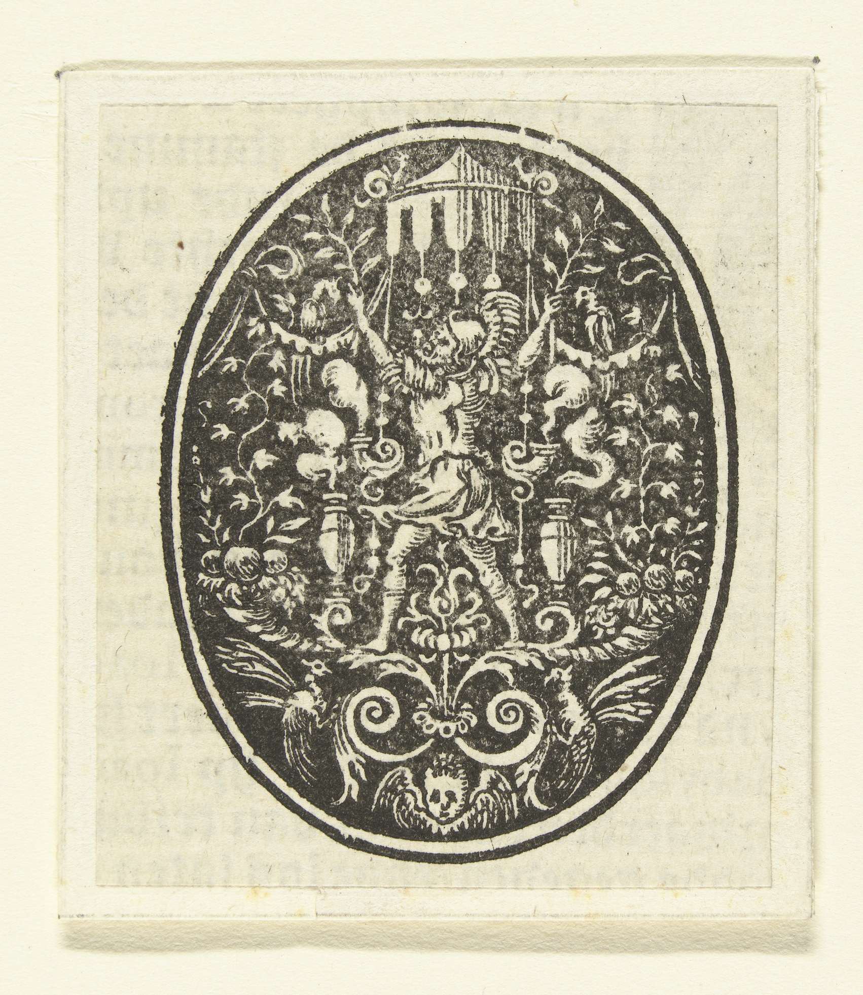 Tegenzijdige kopie naar prent van Etienne Delaune. Middenonder hangt een cherubijntje tussen twee vogels.