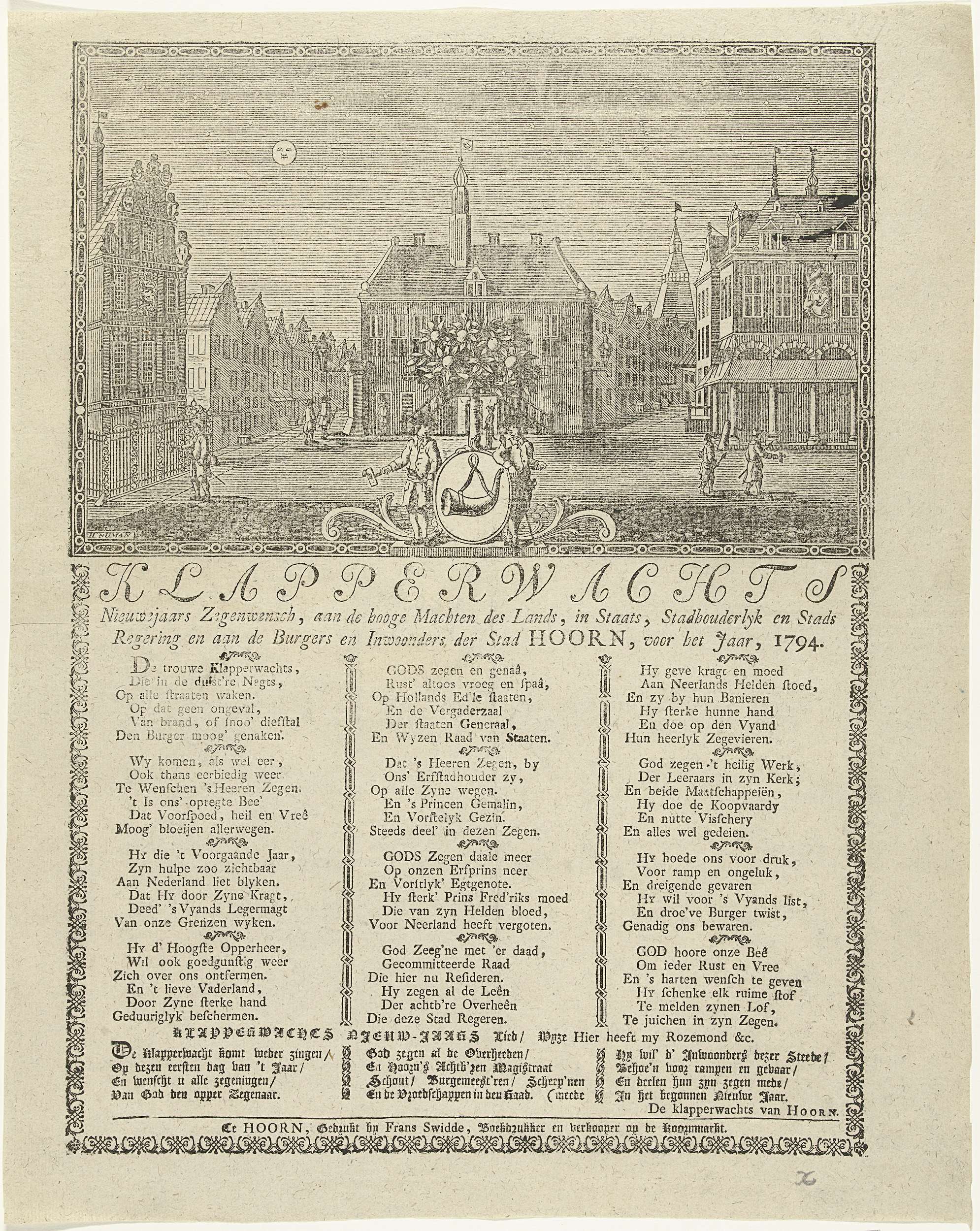 Nieuwjaarsprent van de Hoornse klapperwacht voor het jaar 1794
