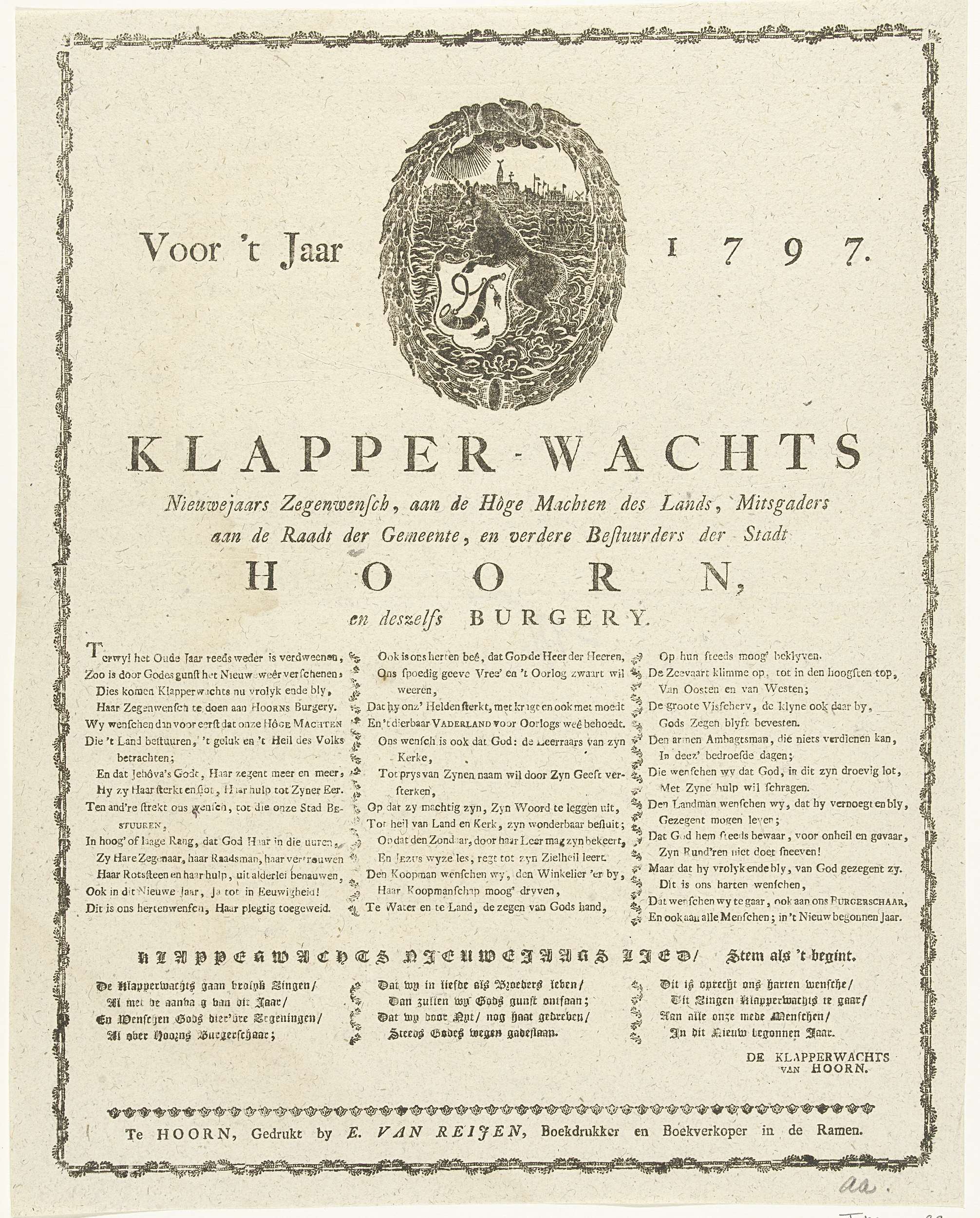 Nieuwjaarsprent van de Hoornse klapperwacht voor het jaar 1797
