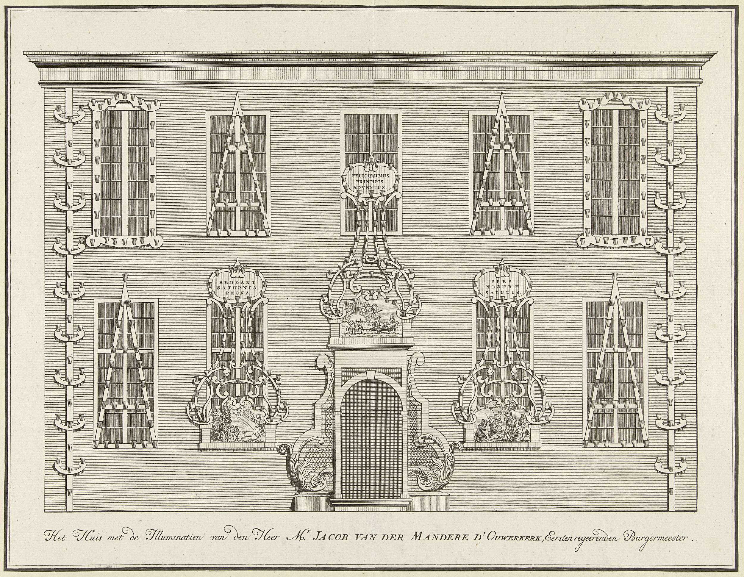 Illuminatie op het huis van J. van der Mandere d'Ouwerkerk, 1751