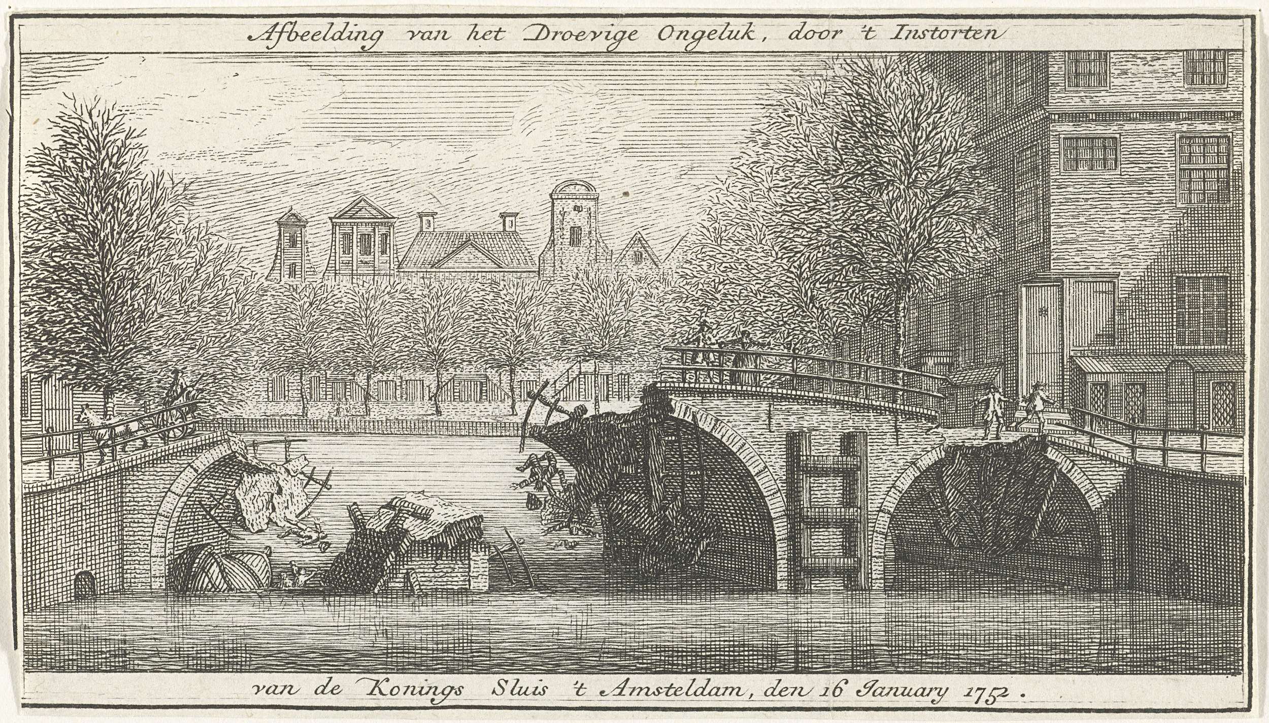 Ingestorte Koningssluis te Amsterdam, 1752
