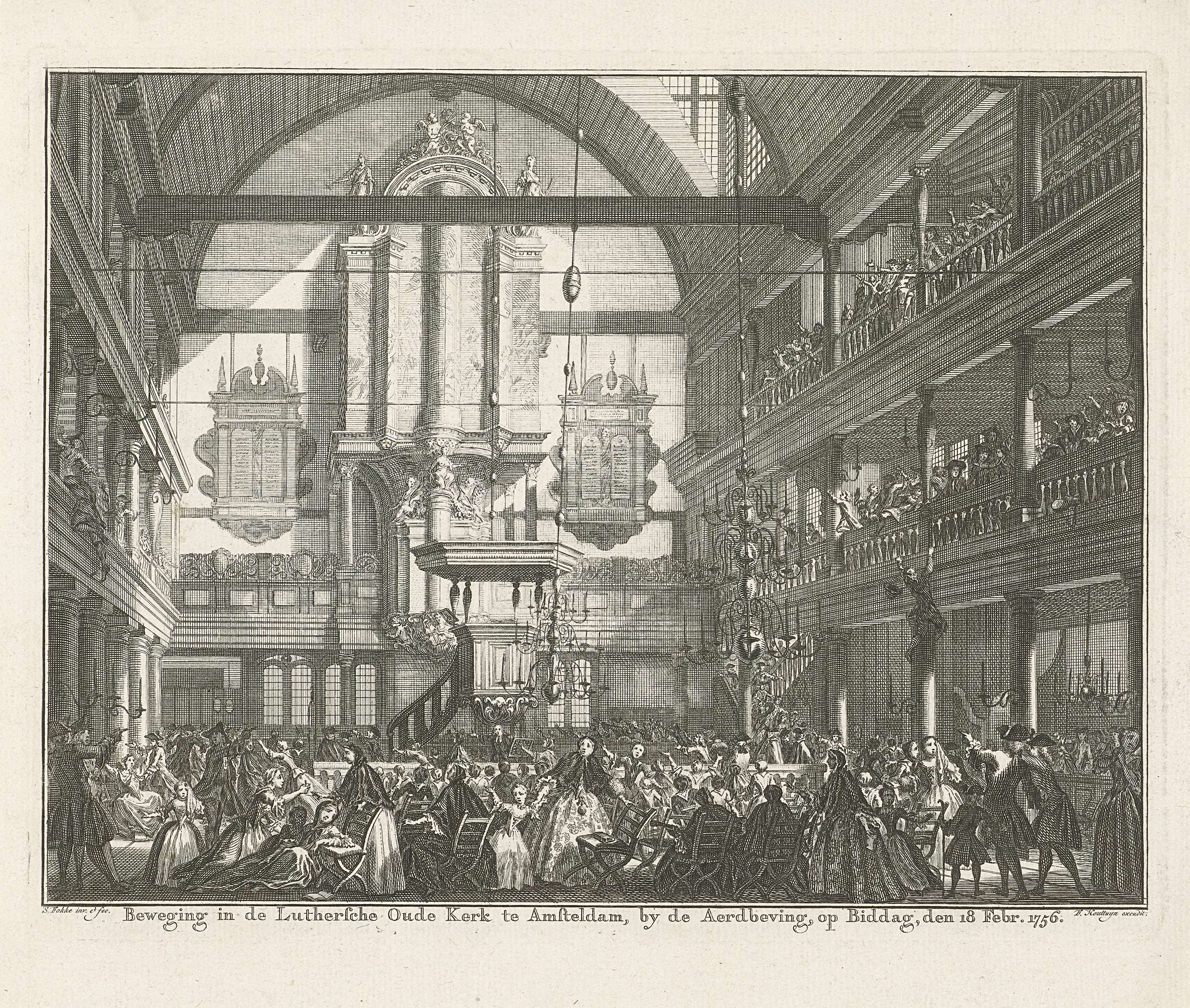 Opschudding in de Oude Lutherse Kerk te Amsterdam tijdens de aardbeving van 18 februari 1756