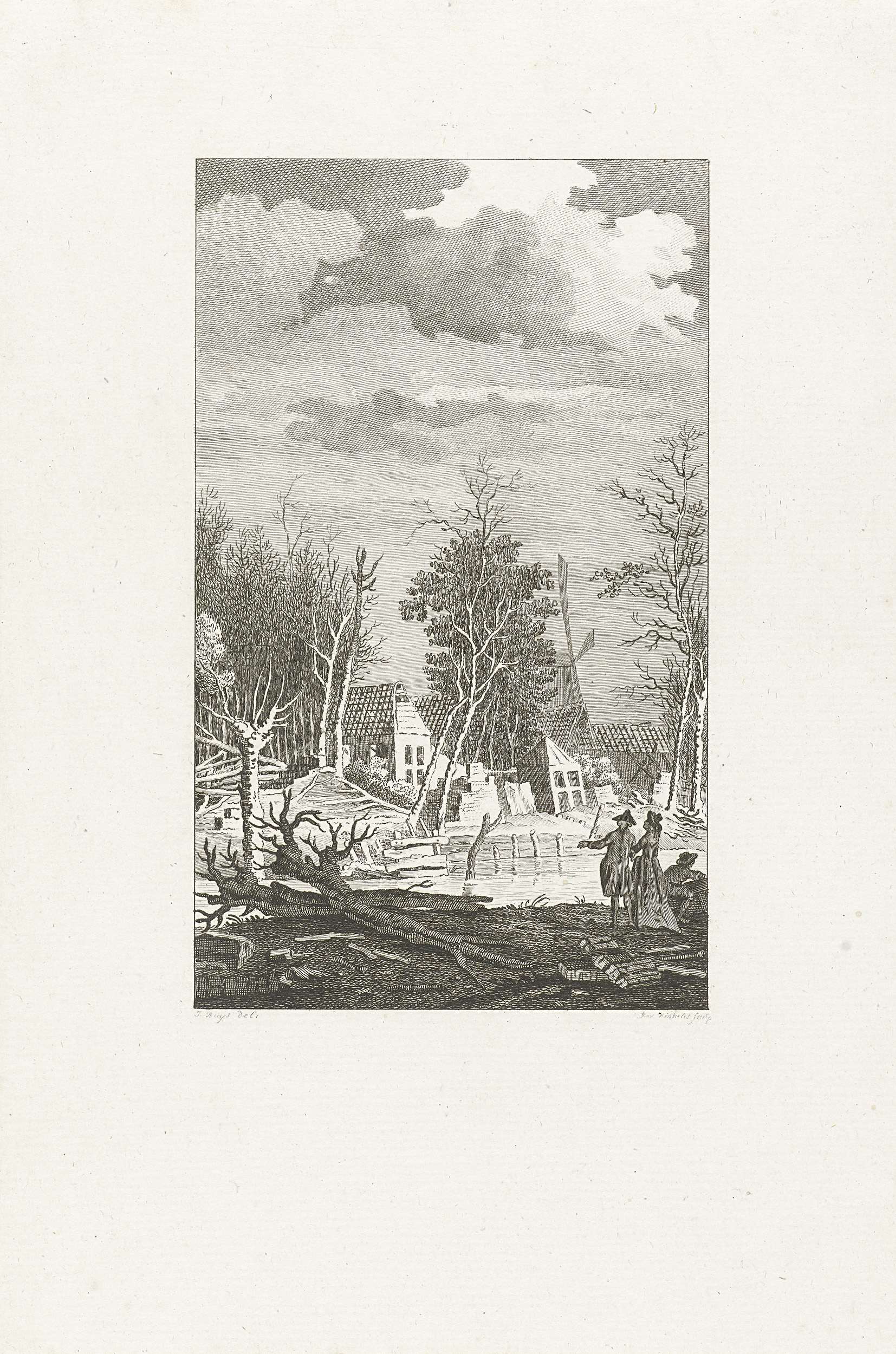Gezicht op de ruïne van de kruitfabriek in de kruitmolen Sollenburg aan de Overtoom te Amsterdam na de ontploffing op 14 augustus 1758.