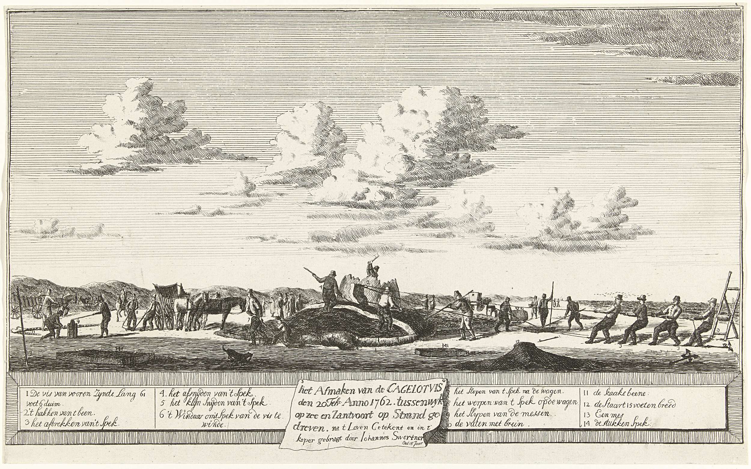 Slachten van de potvis gestrand tussen Zandvoort en Wijk aan Zee, 1762
