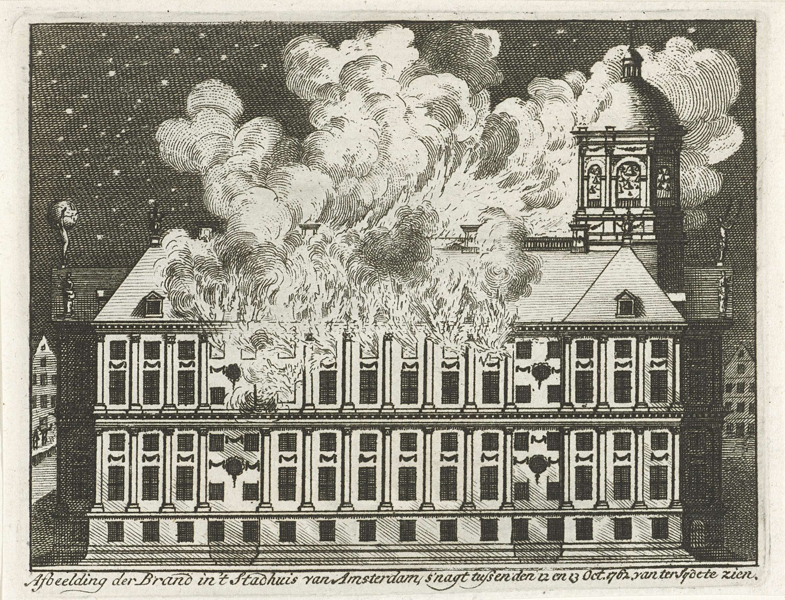 Brand in het Stadhuis op de Dam te Amsterdam, in de nacht van 12 op 13 oktober 1762.