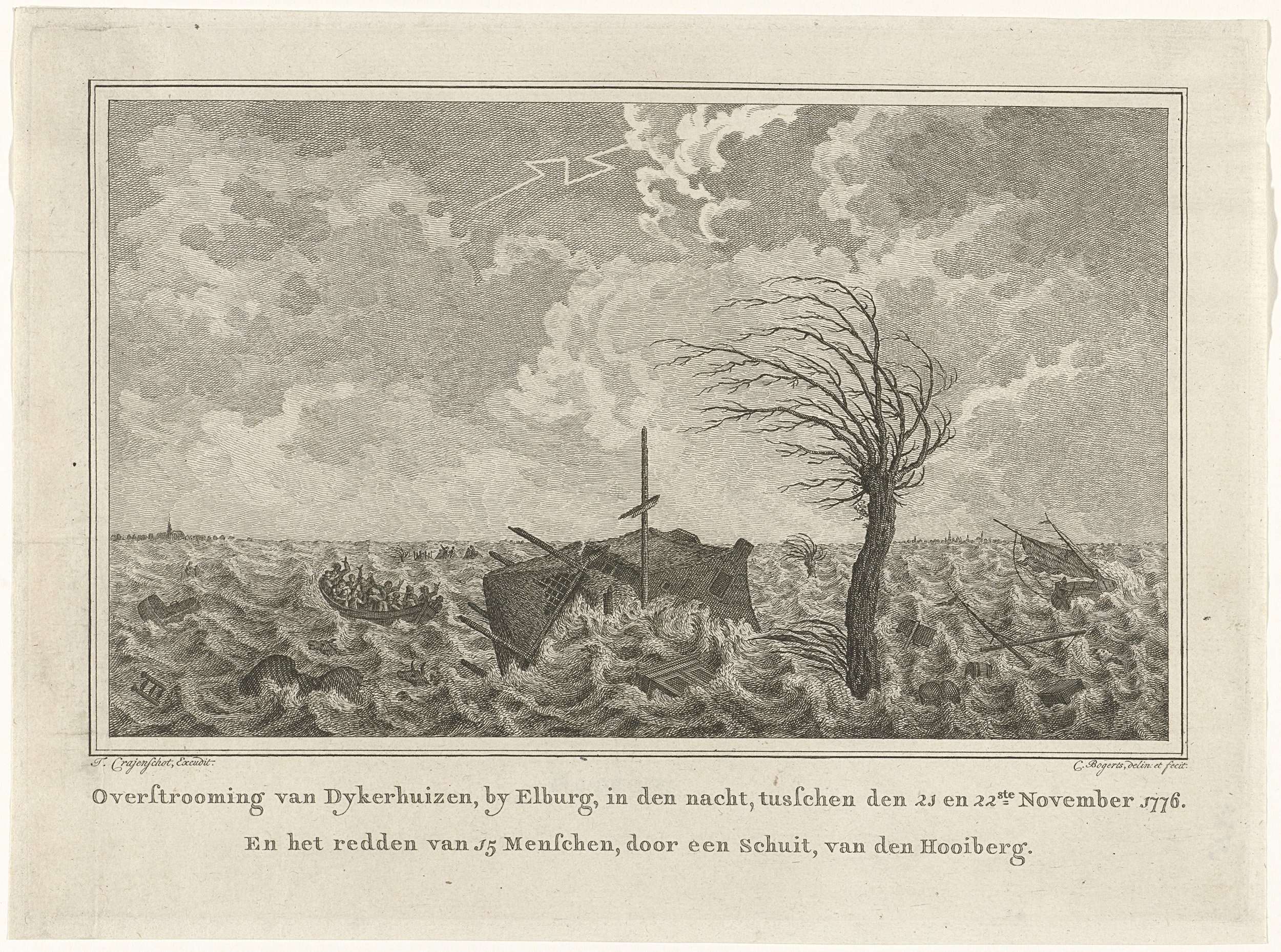 Watersnood en overstroming van het dorp Dijkerhuizen bij Elburg en de redding van 15 personen met een schuit, 21-22 november 1776.