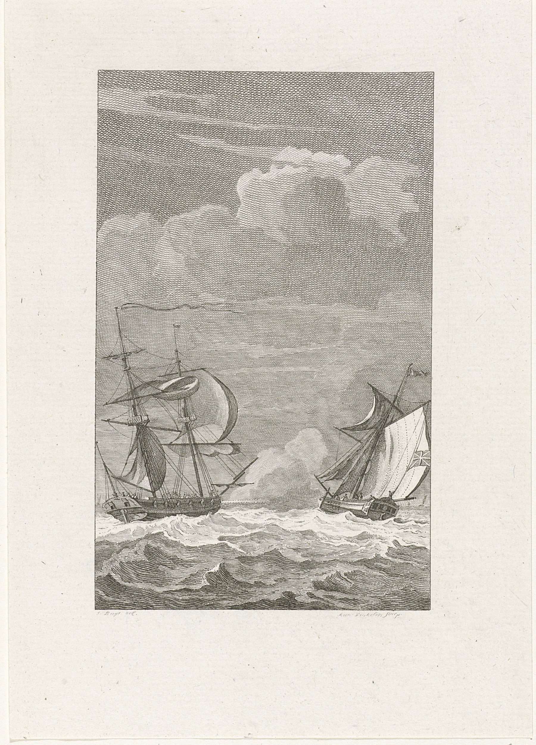 De Amerikaanse kaperkapitein Cunningham beschiet en verovert een Engels pakketboot in het Kanaal, 2 mei 1777.