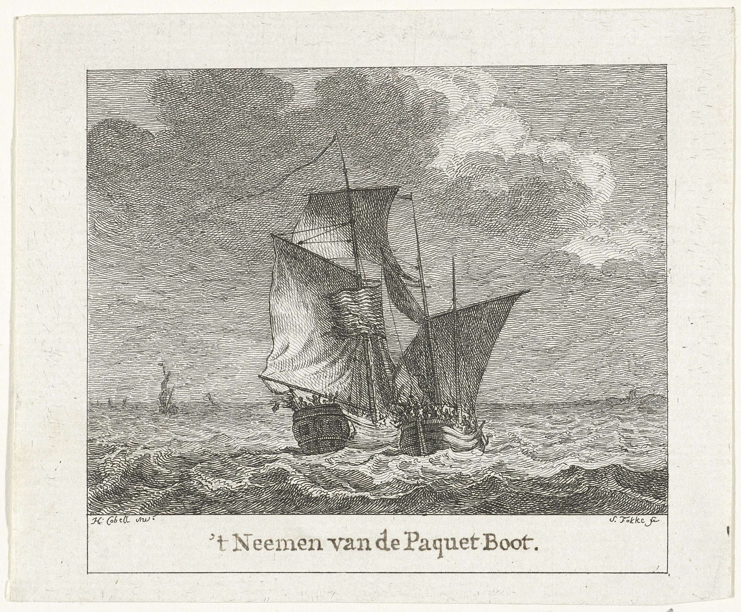 De Amerikaanse kaperkapitein Cunningham verovert een Engels pakketboot in het Kanaal, 2 mei 1777.