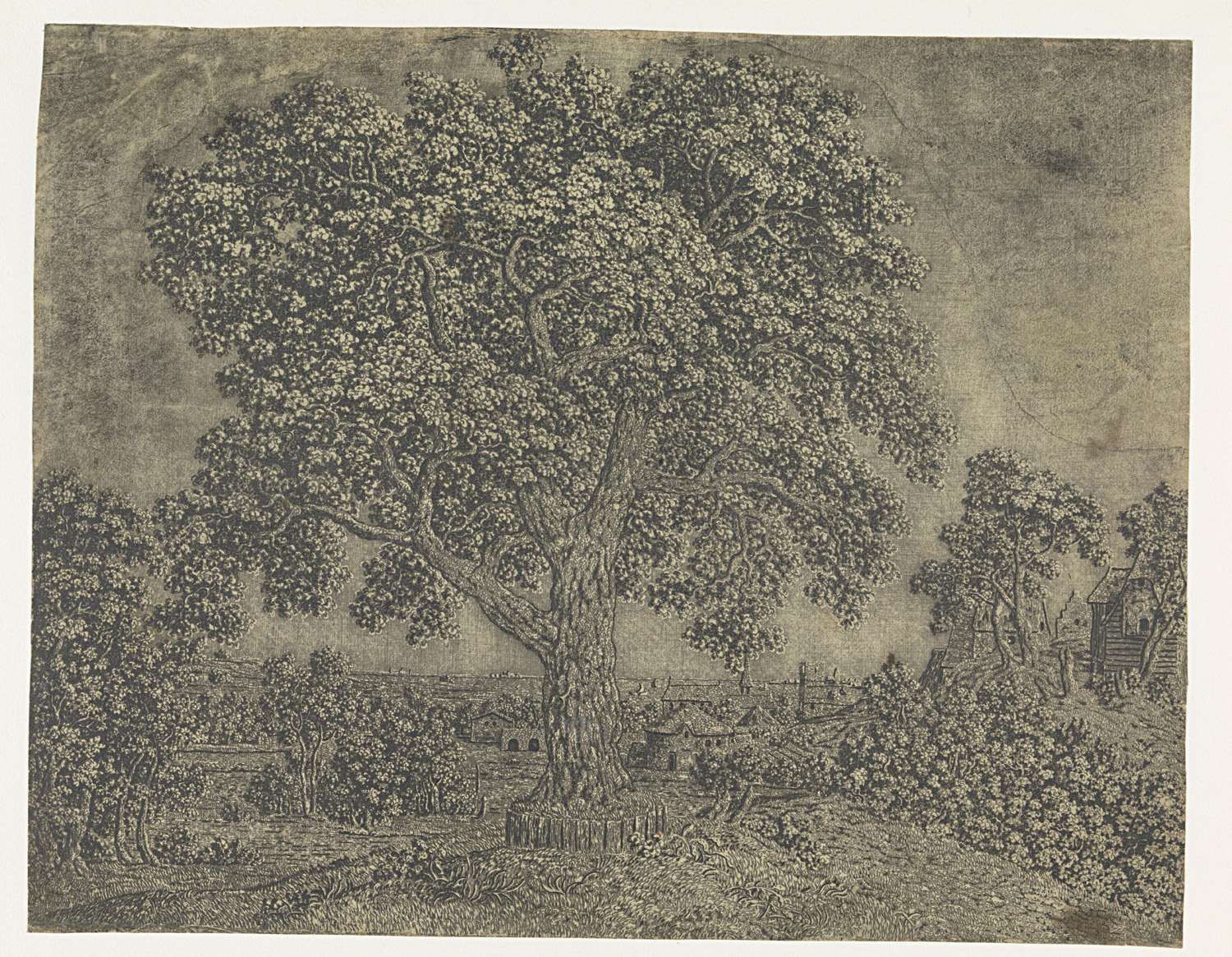 Voor deze ets bedekte Segers vrijwel de hele plaat met een dicht patroon van gekruiste lijnen. Wat hij wenste uit te sparen dekte hij af. Afgedrukt op wit papier leverde dit subtiele gradaties op van zwarte en grijze tonen en het lichtspel in onder meer de bladerkroon.