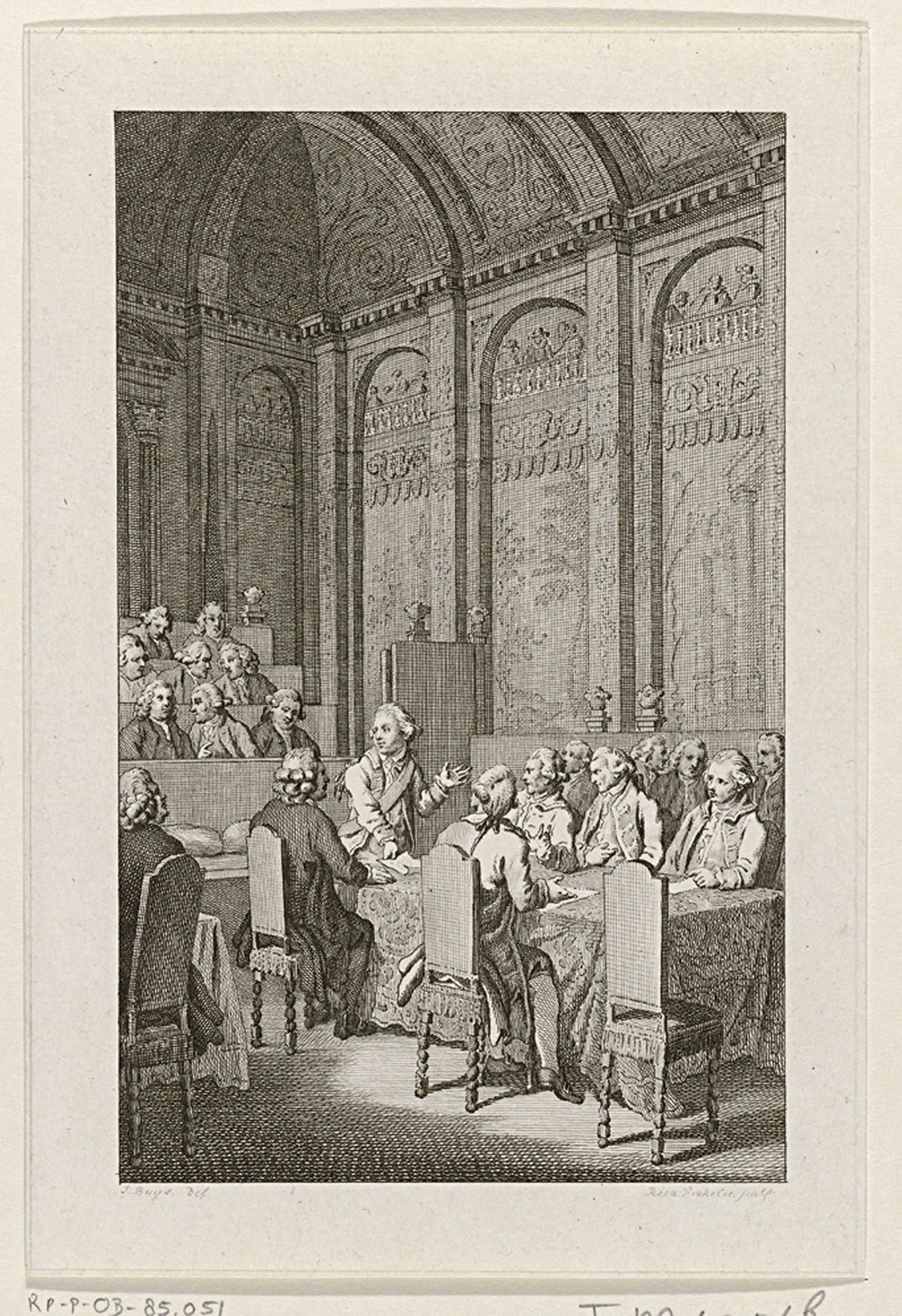 Stadhouder Willem V levert bij de vergadering van de Staten van Holland de door de Engelsen in beslag genomen papieren van de Amerikaan Henry Laurens in, 20 oktober 1780.