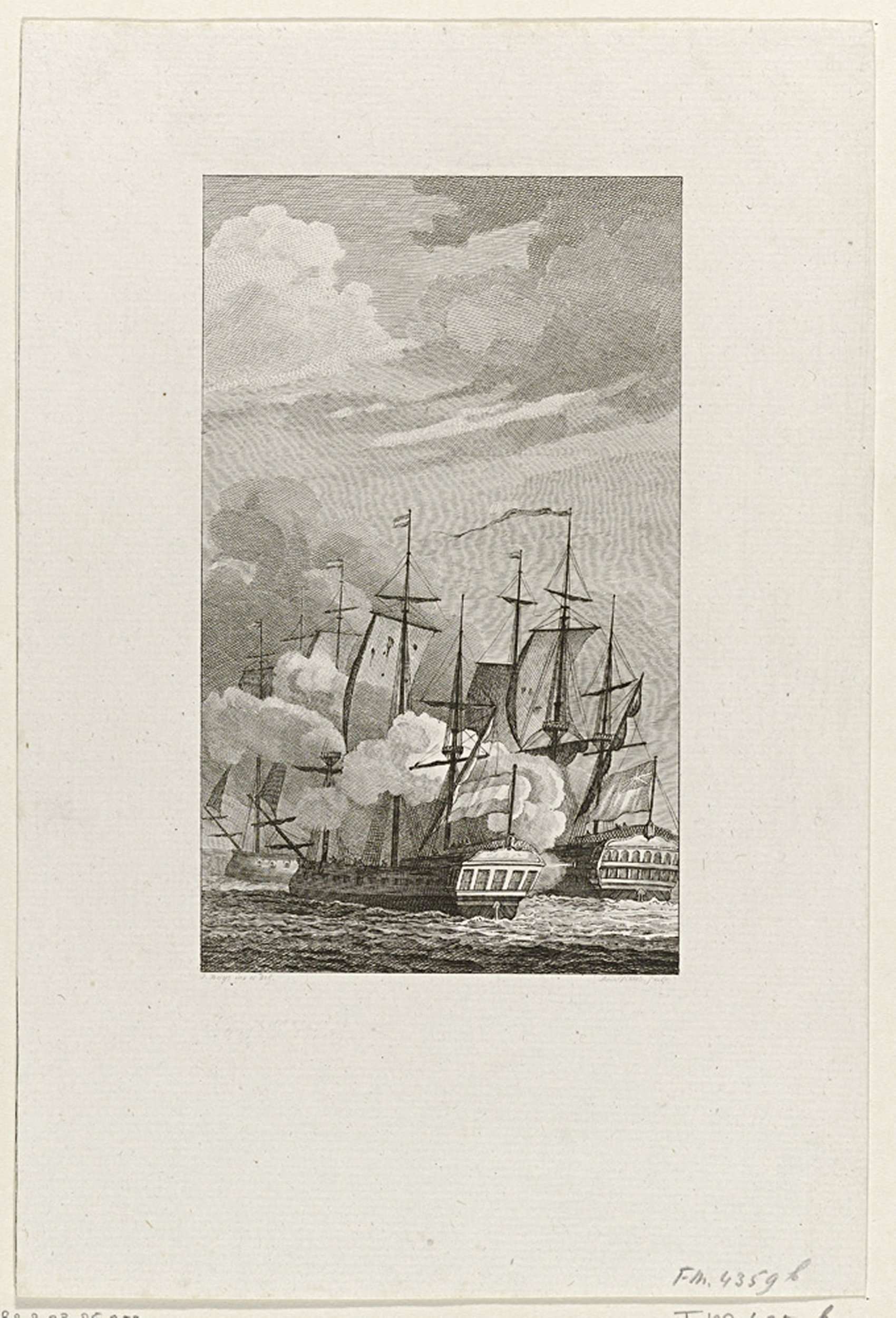 Kapitein Statink bij Calais in gevecht met twee Engelse oorlogsschepen, 1780