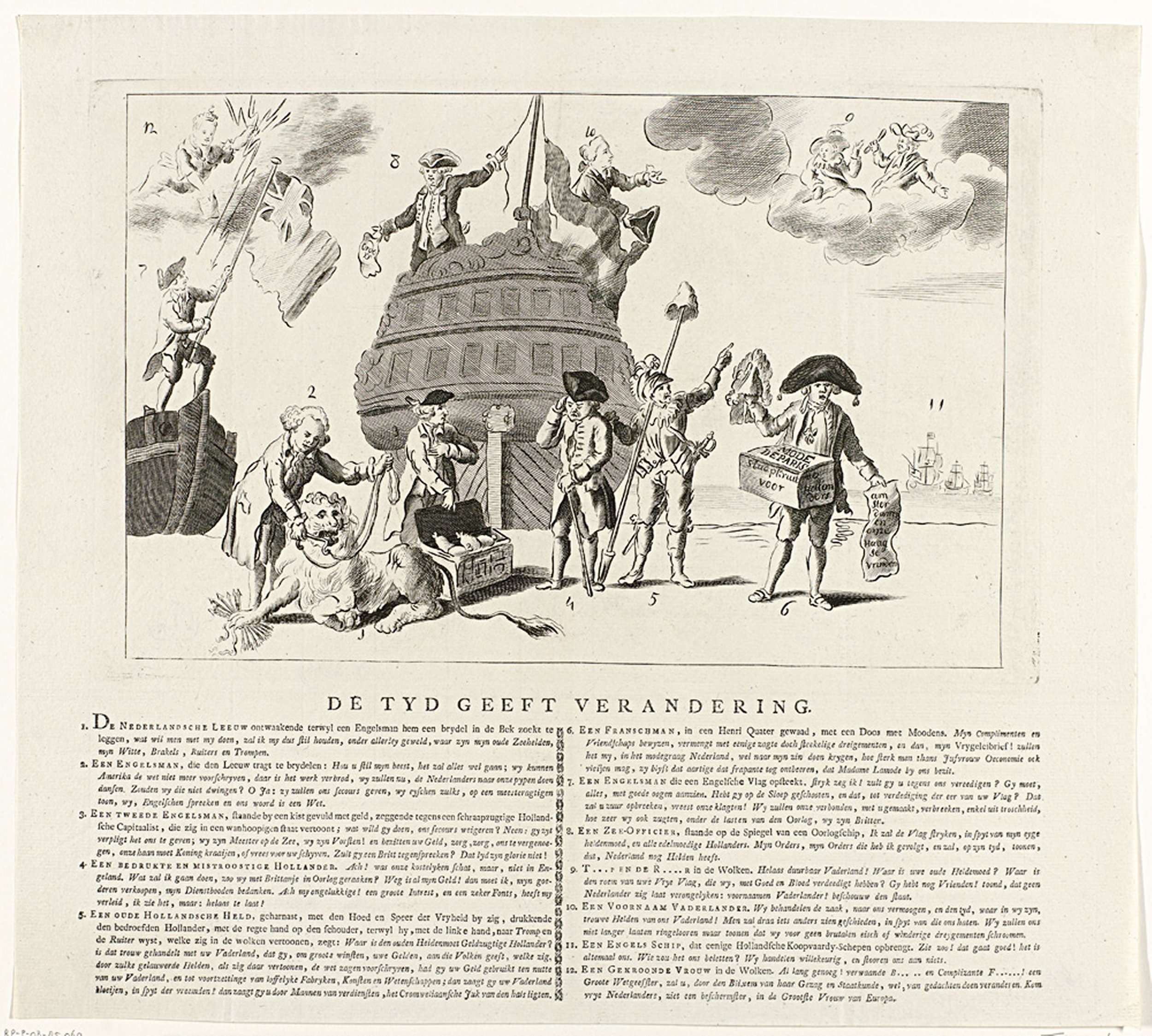 Spotprent op de oorlog tussen de Republiek en Engeland, ca. 1780