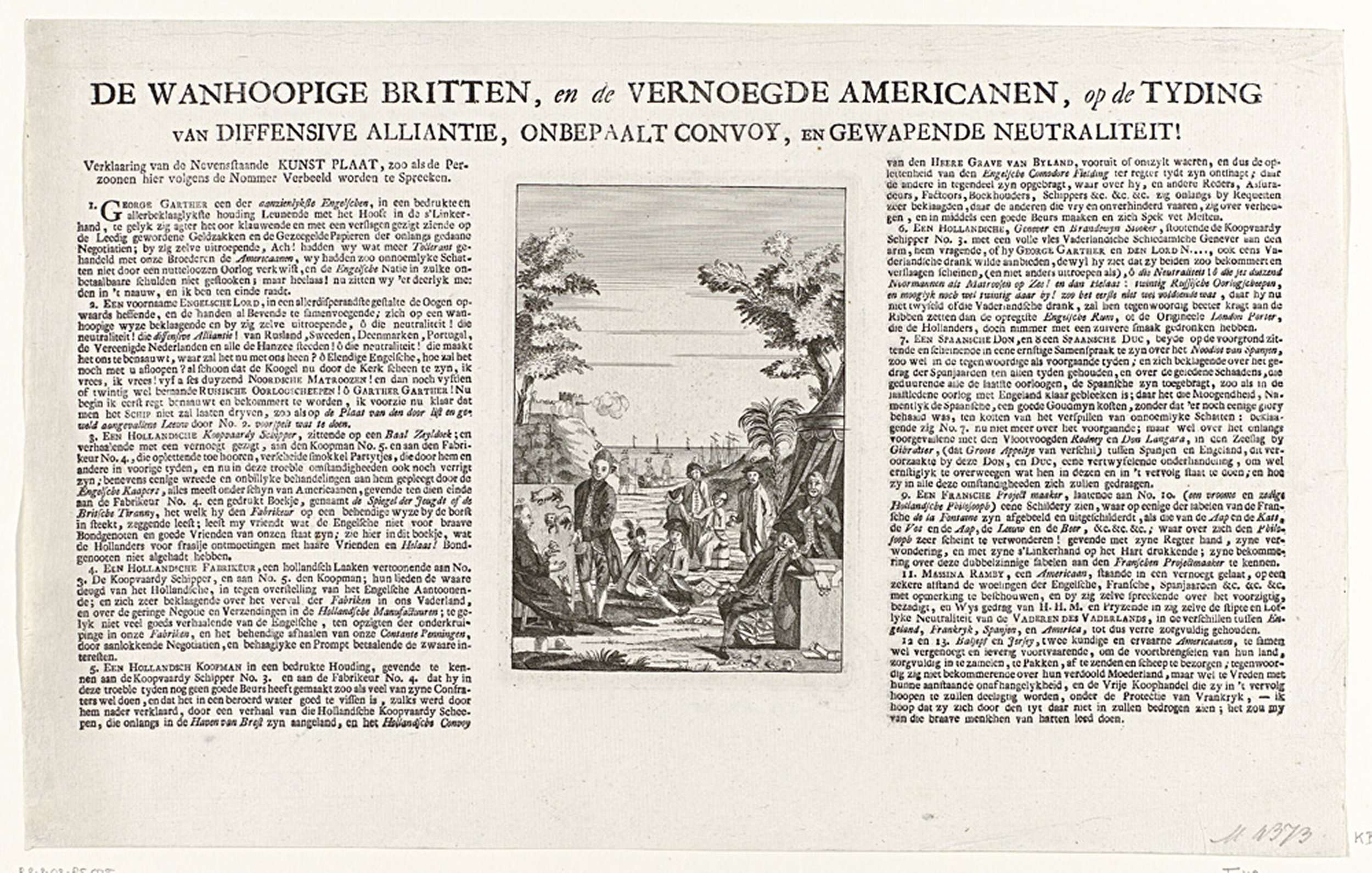 Spotprent op de problemen tussen Engeland en Amerika en Holland, ca. 1780