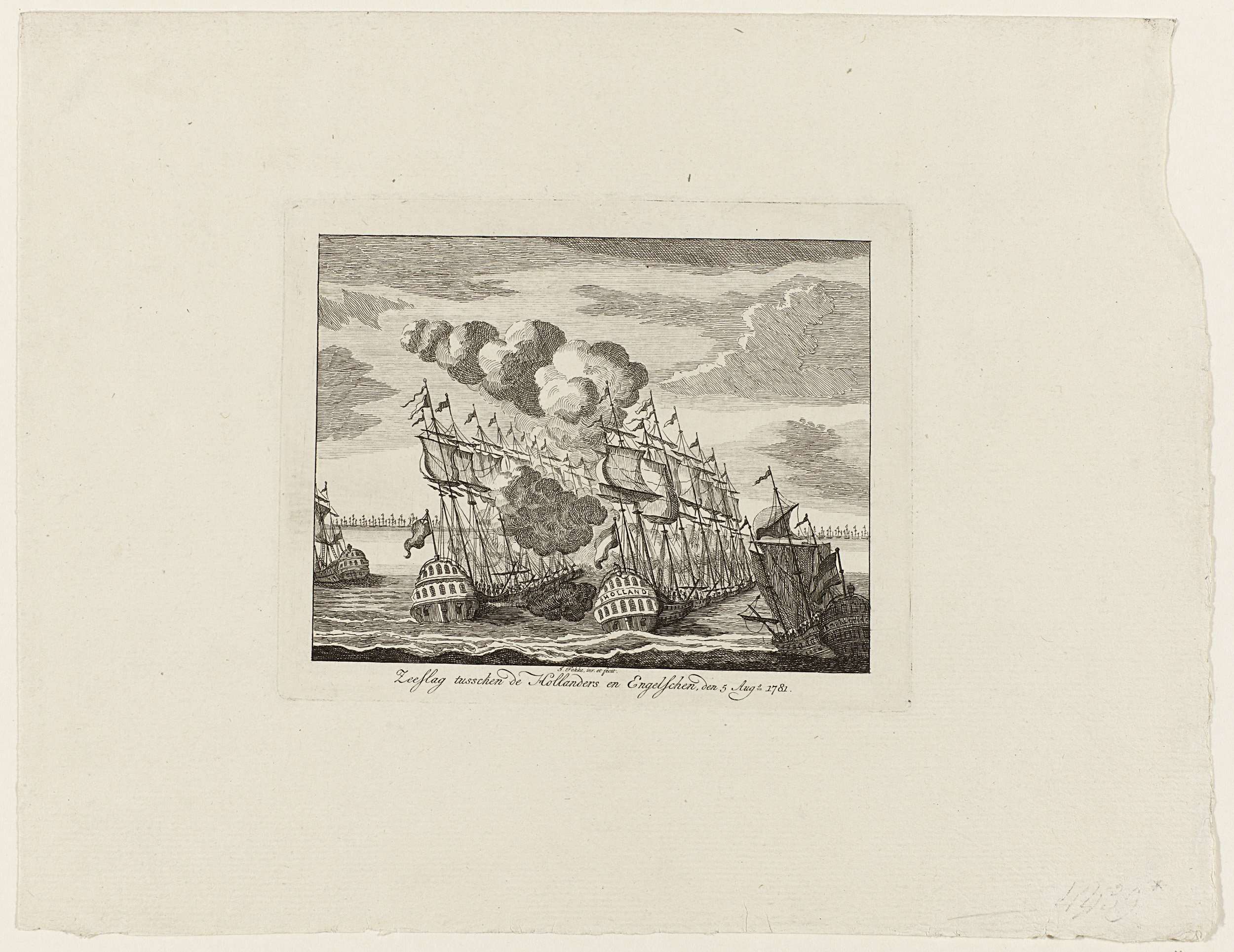 De Nederlandse en Engelse schepen tijdens de zeeslag bij Doggersbank op 5 augustus 1781 tussen de Nederlandse vloot onder schout-bij-nacht Johan Zoutman en de Engelse vloot onder vice-admiraal Hyde Parker.
