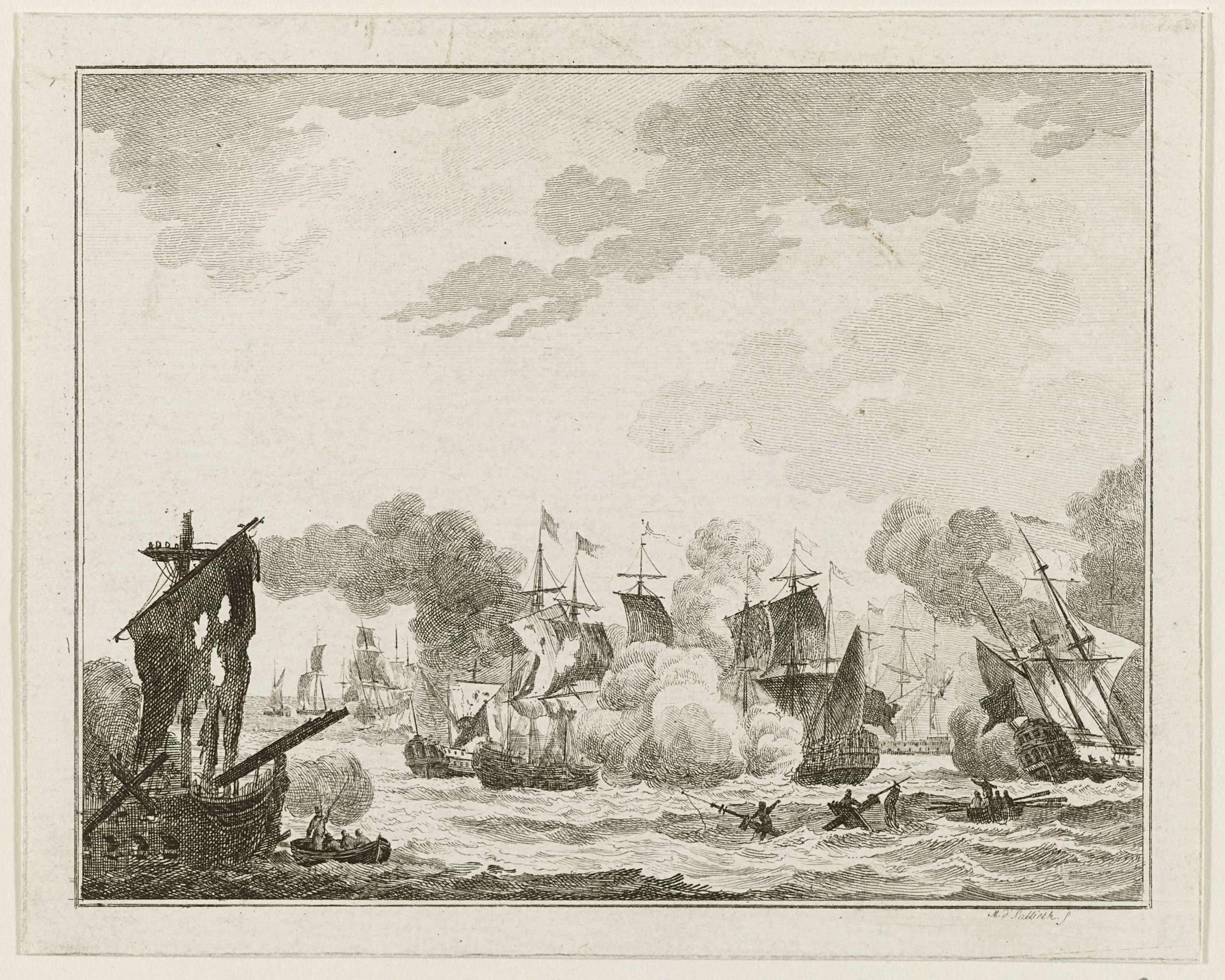 De Nederlandse en Engelse schepen tijdens de zeeslag bij Doggersbank op 5 augustus 1781 tussen de Nederlandse vloot onder schout-bij-nacht Johan Zoutman en de Engelse vloot onder vice-admiraal Hyde Parker.