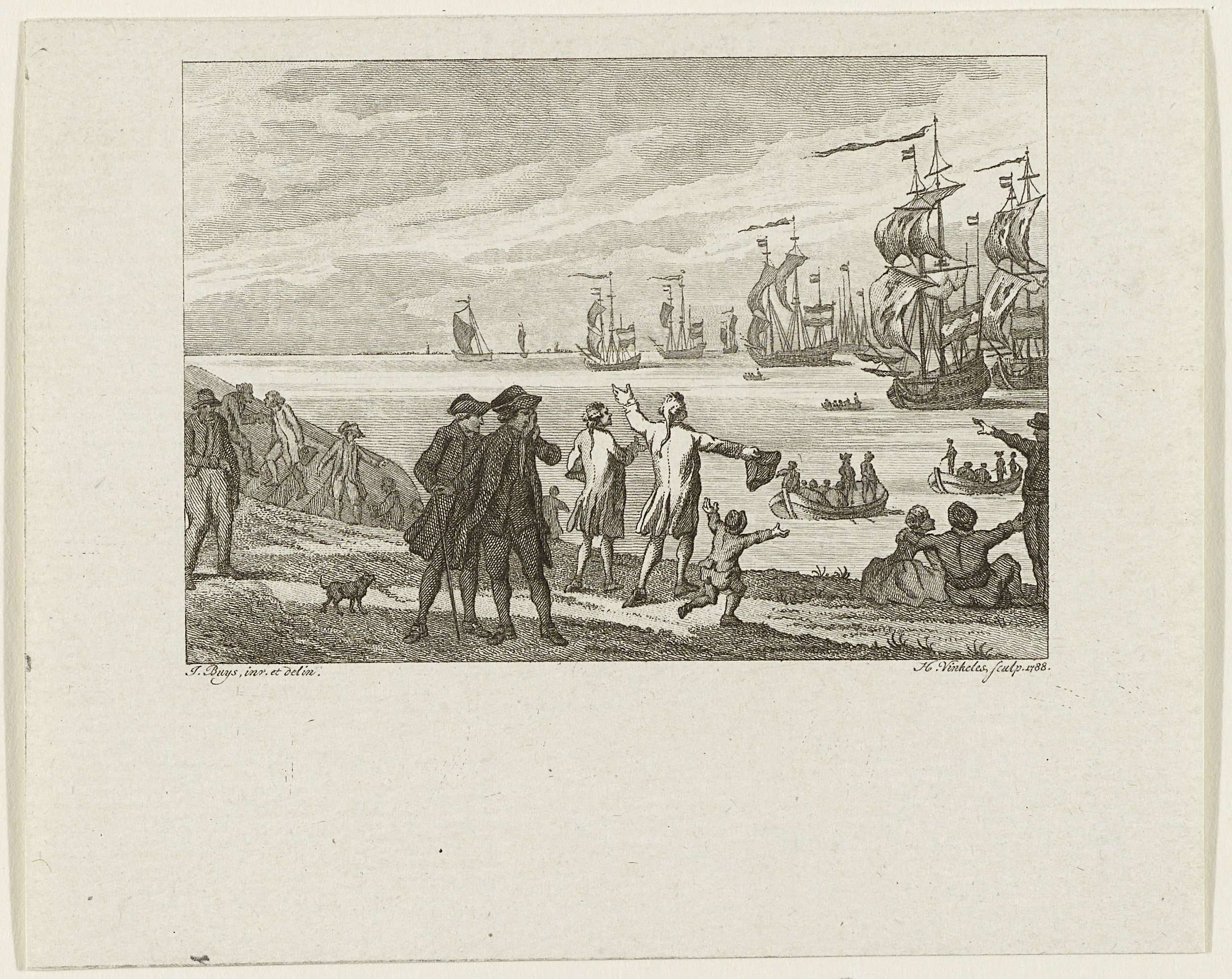 De terugkeer van de Hollandse vloot na de zeeslag bij Doggersbank op 5 augustus 1781 tussen de Nederlandse en de Engelse vloot. De schepen worden op de wal jubelend ontvangen.