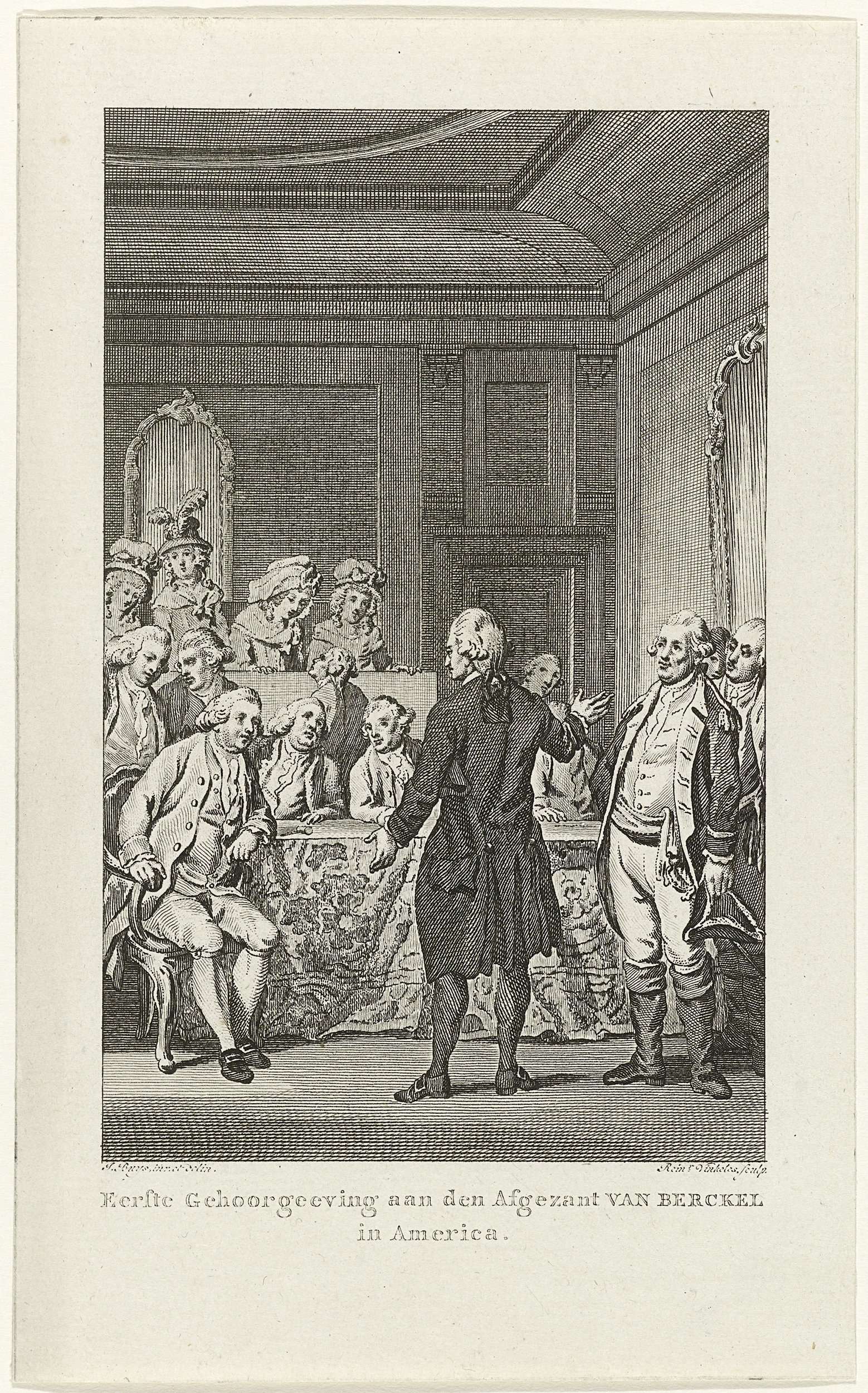 Ontvangst van de eerste Nederlandse gezant Pieter Johan van Berckel in de Amerikaanse senaat in Princetown, 31 oktober 1783.