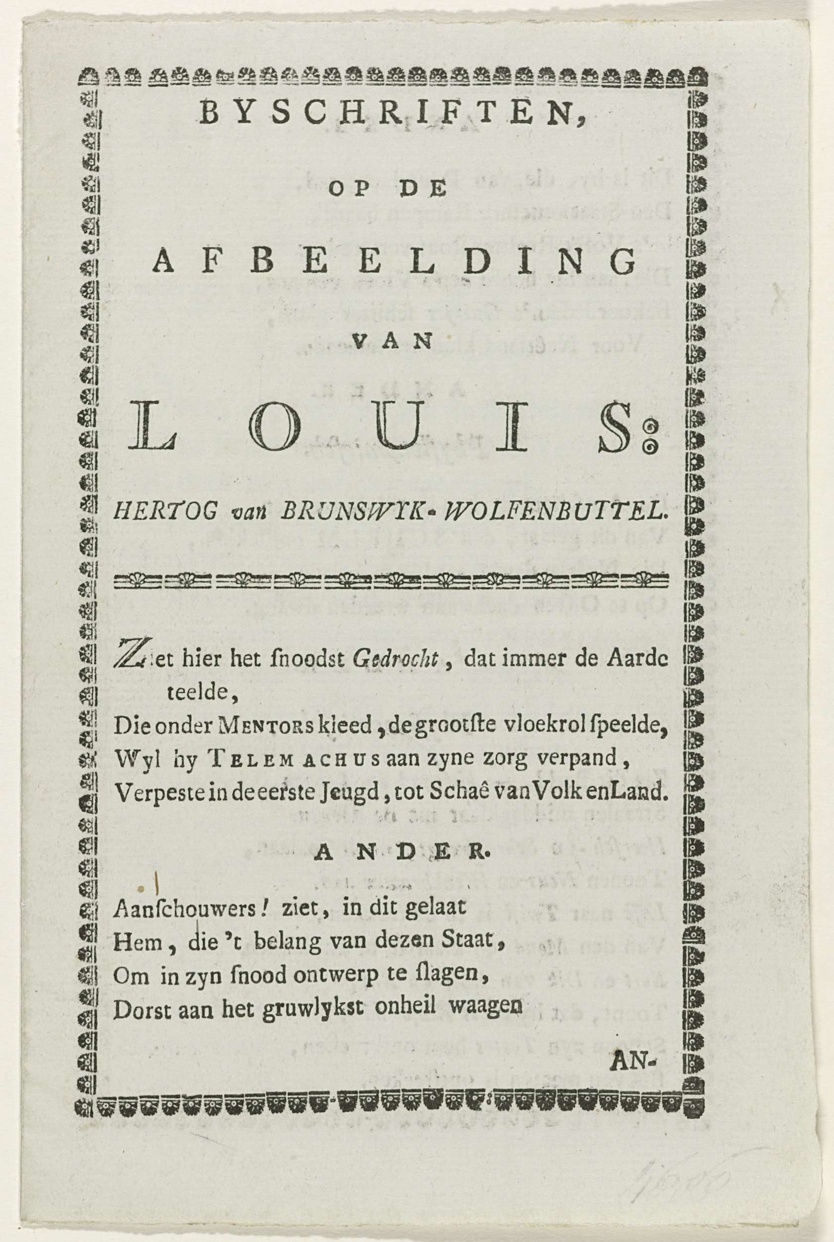 Spotverzen op het portret van de hertog van Brunswijk, 1782-1783