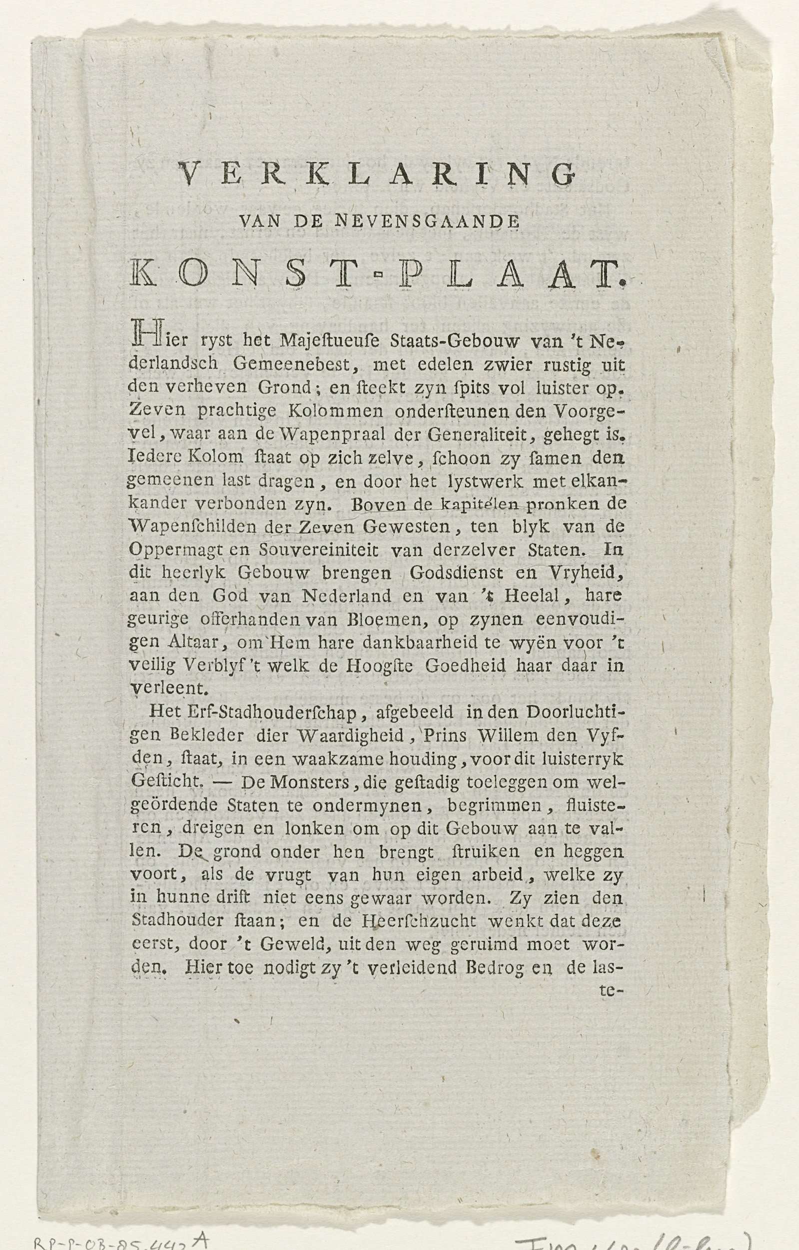 Bericht van de uitgever over de titelplaat bij de Katechismus van het stadhouderschap, 1786