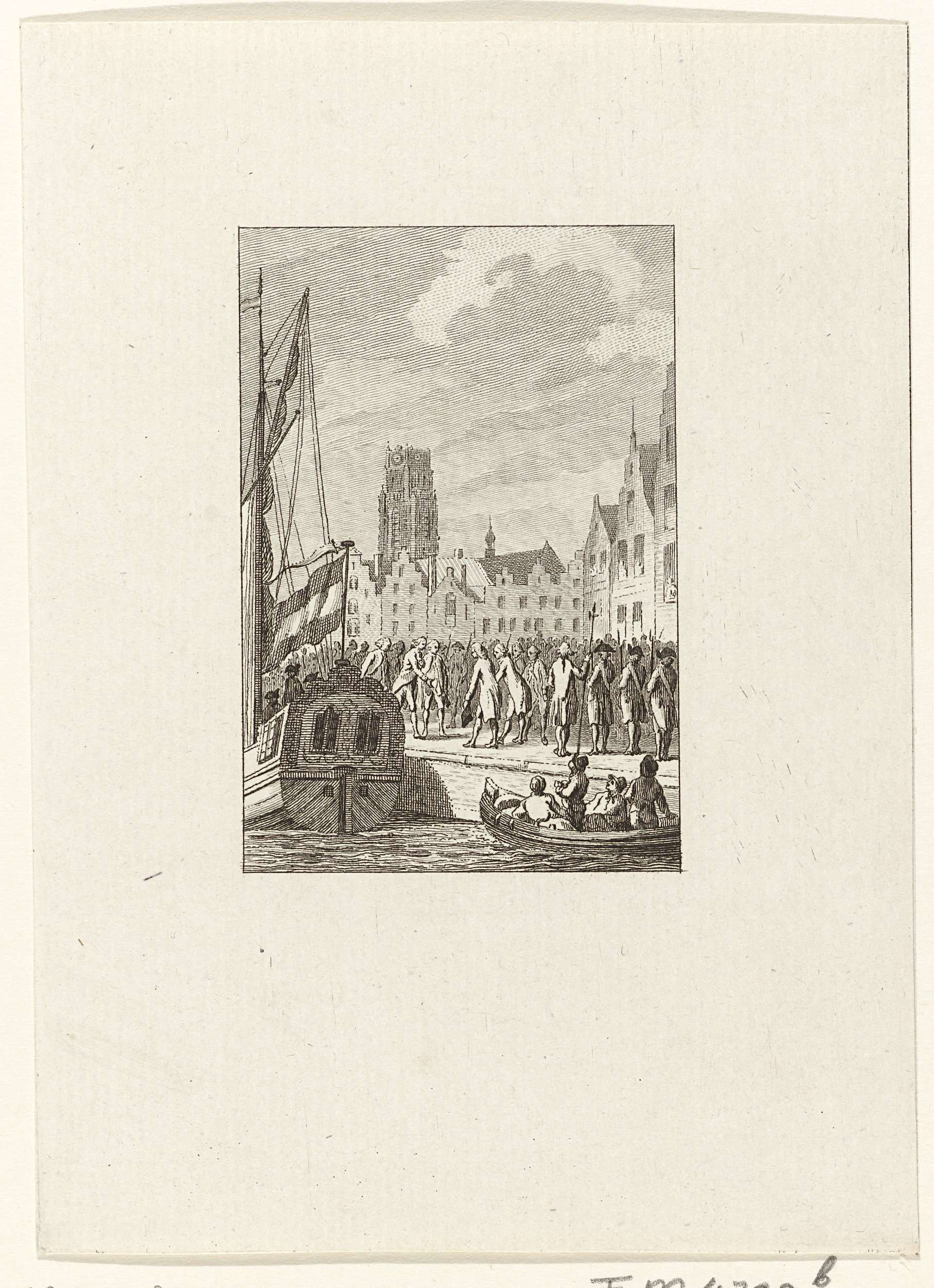 Het vertrek van de Staten Commissie op een kade te Rotterdam, 24 juni 1786