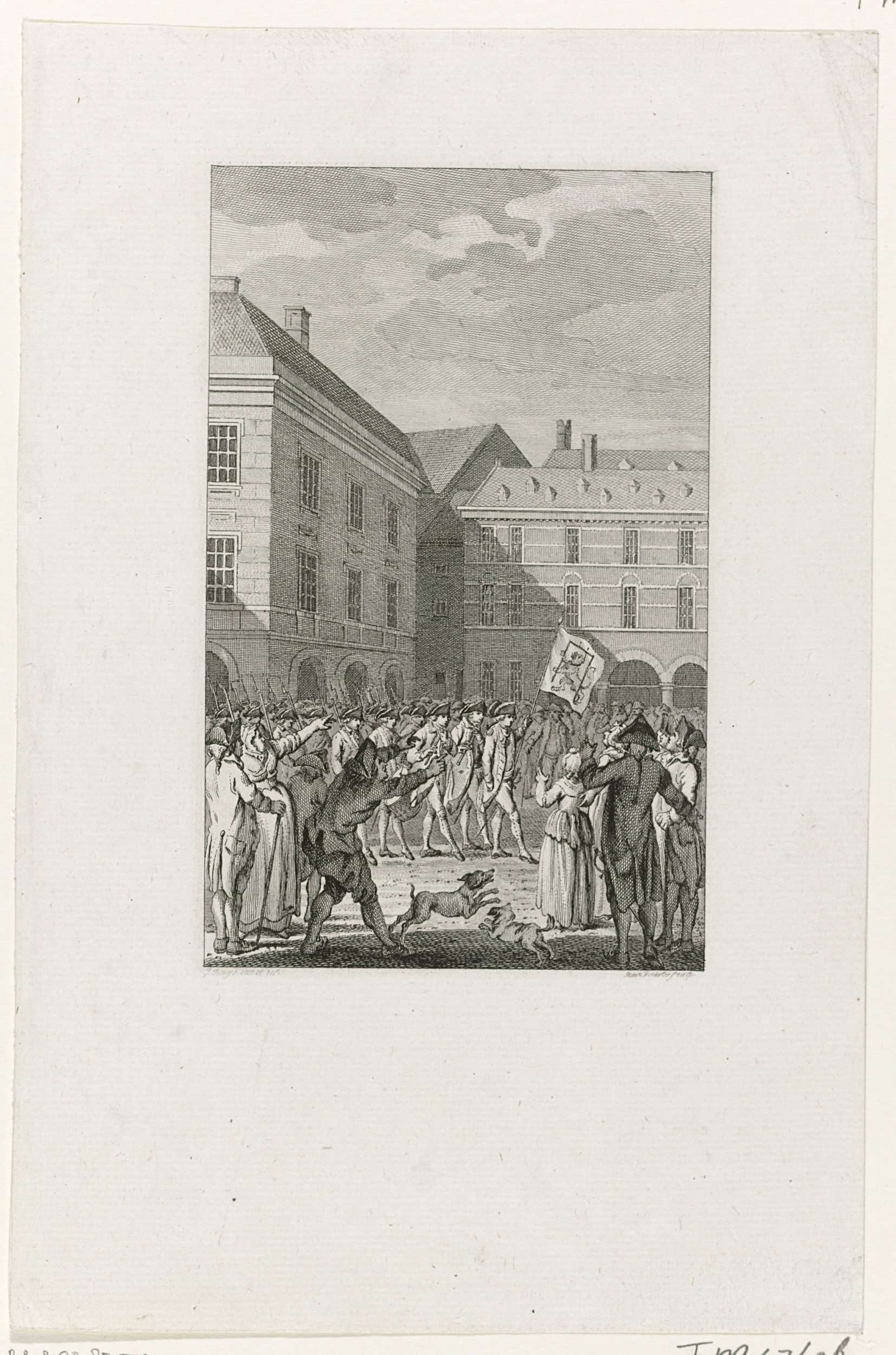 Optrekken van de wacht op het Binnenhof met een schandelijk vaandel, 1787