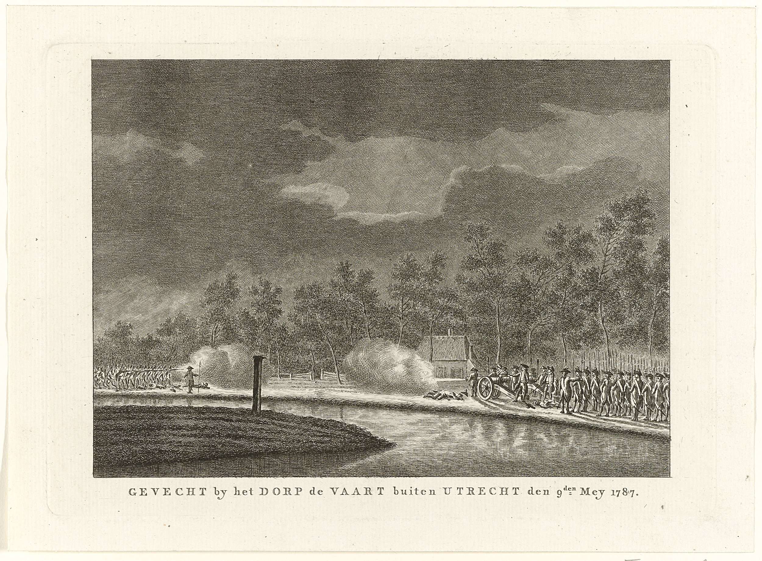 Vuurgevecht aan de vaart bij Vreeswijk buiten Utrecht tussen gewapende burgers van de Utrechtse schutterij en troepen van het regiment Van Efferen, in de avond van 9 mei 1787.