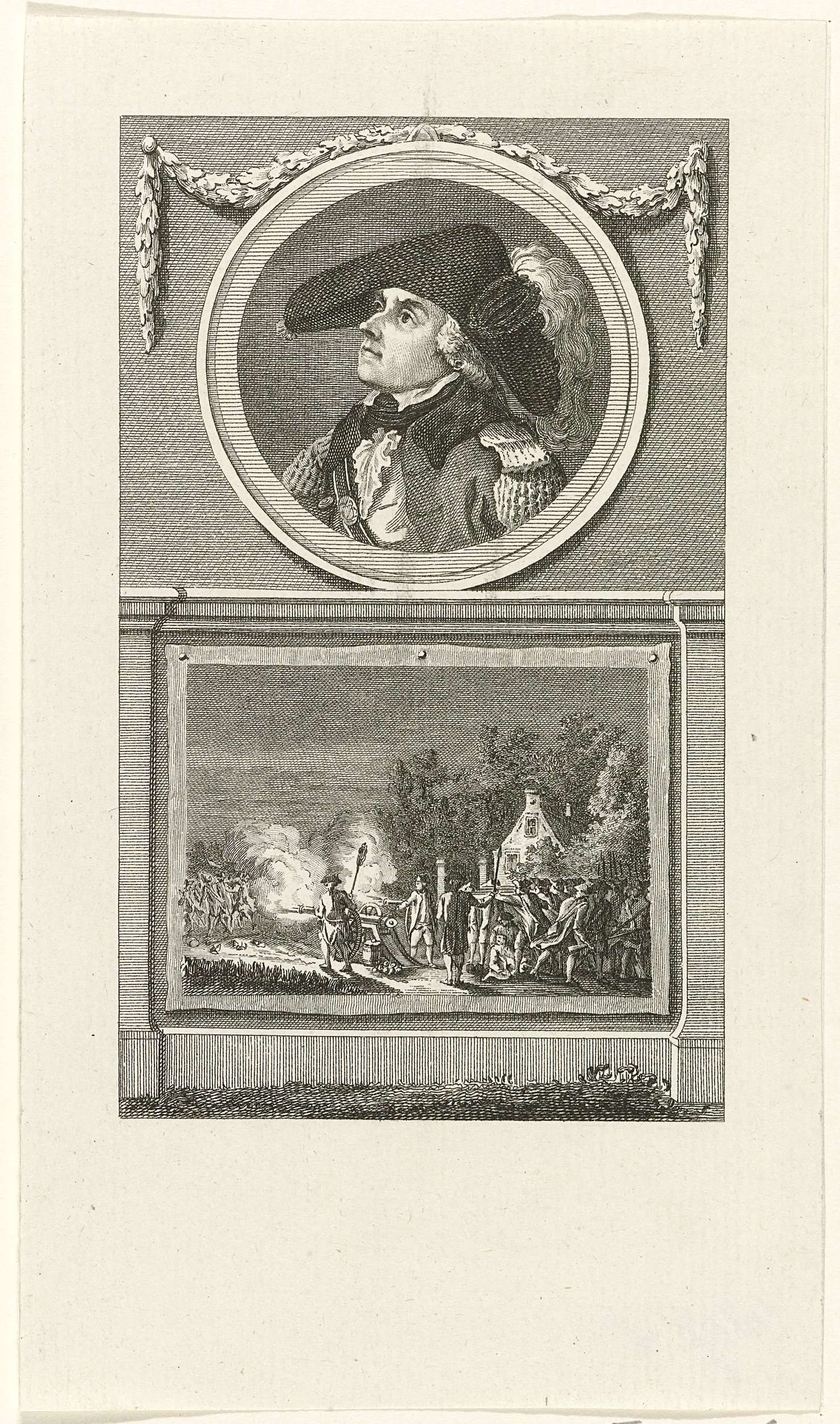 Portret van Cornelis Govert Visscher en het vuurgevecht bij Vreeswijk, 1787