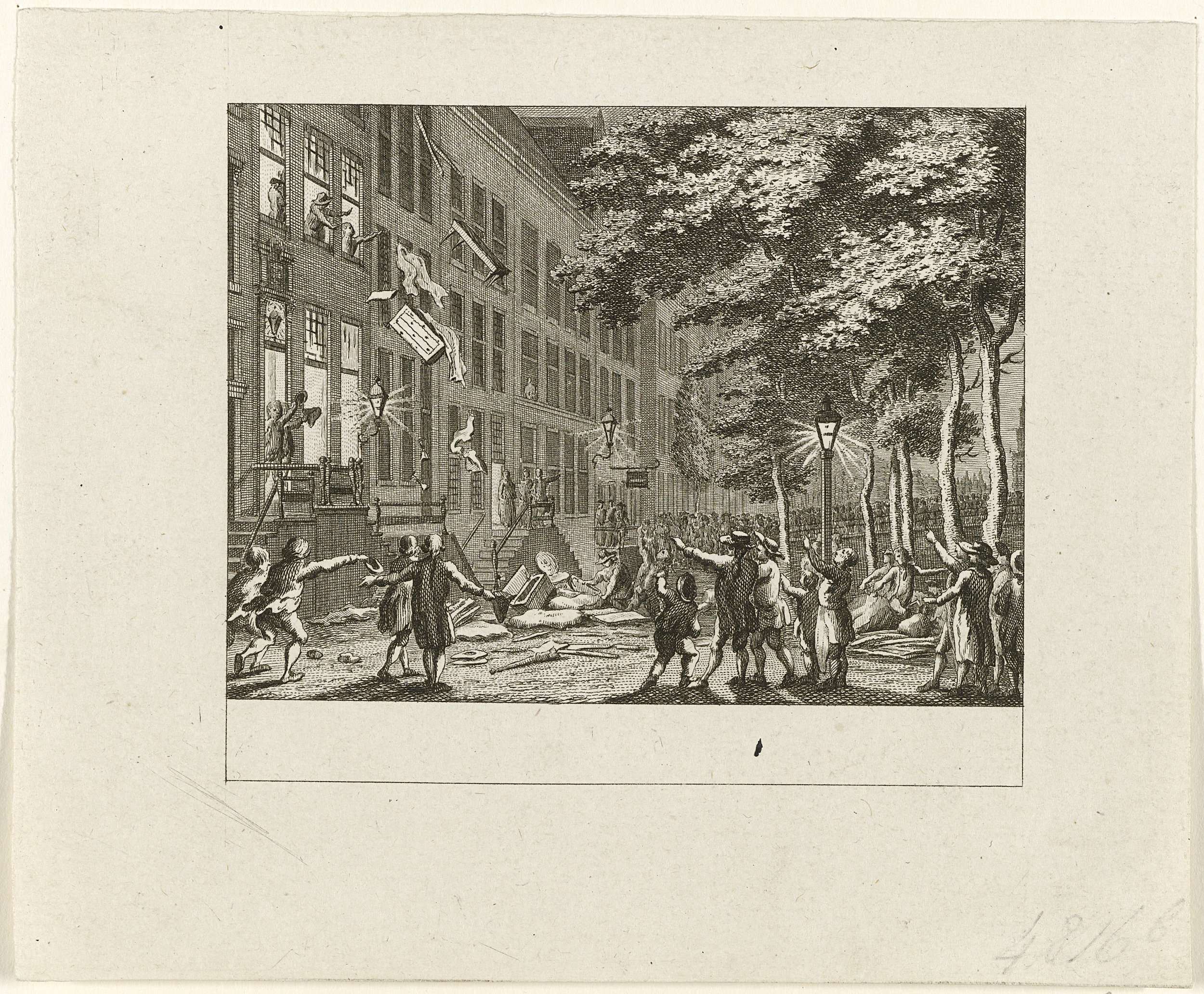 Plundering van het huis van de Amsterdamse burgemeester Joachim Rendorp aan het Singel 292, in de avond van 29 mei 1787.