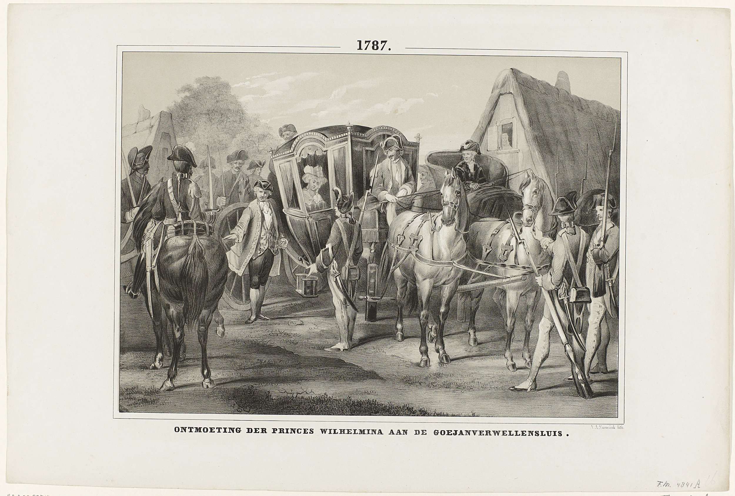 Aanhouding van het rijtuig met prinses Wilhelmina van Pruisen door een exercitiegenootschap bij Goejanverwellesluis, 28 juni 1787.