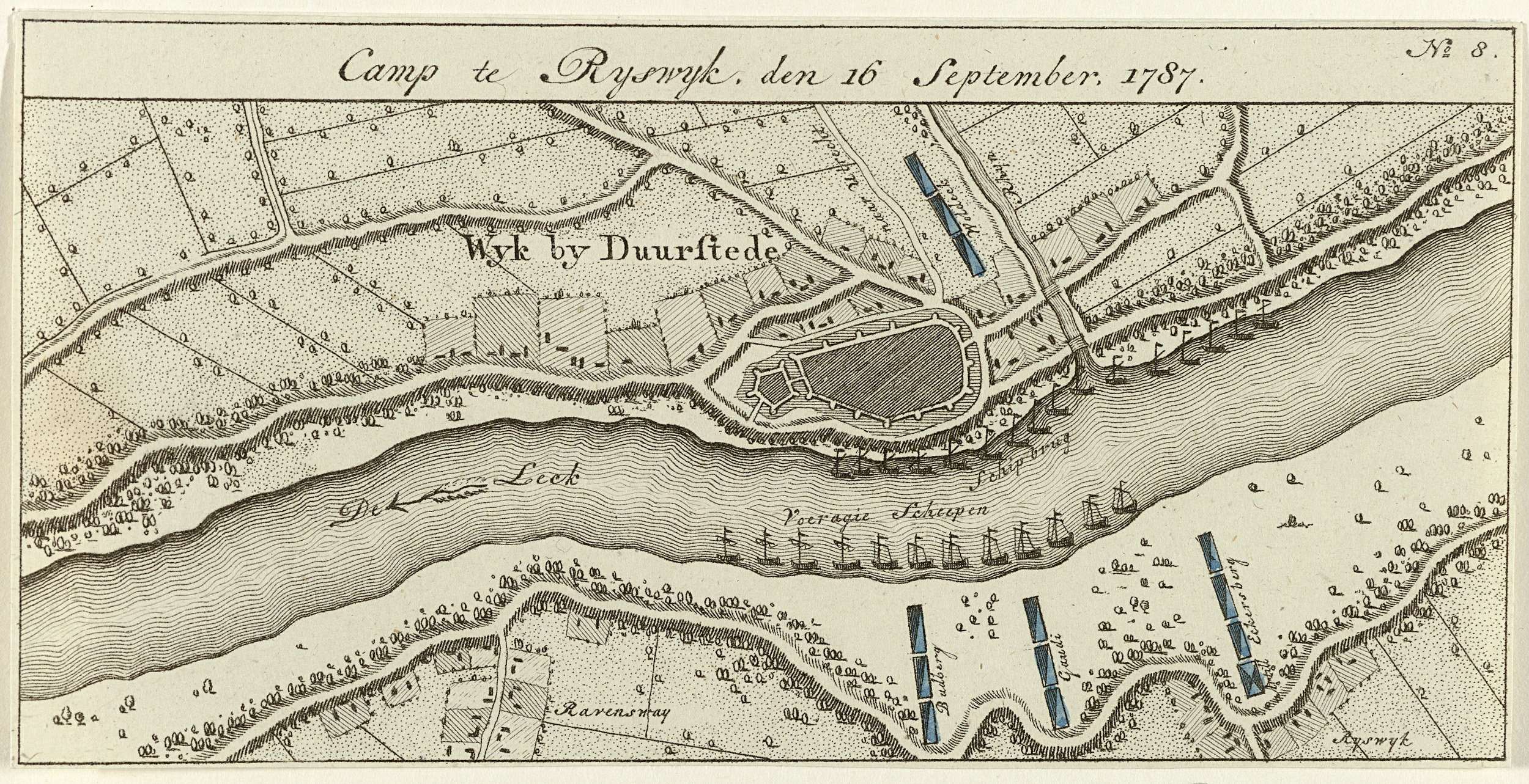 Kaart met de ligging van het kampement van de Pruisische troepen bij Rijswijk in Gelderland op 16 september 1787. Onderdeel van een groep van veertien genummerde kaartjes van de kampementen van de Pruisische troepen tijdens de interventie in de Nederlanden in september 1787.