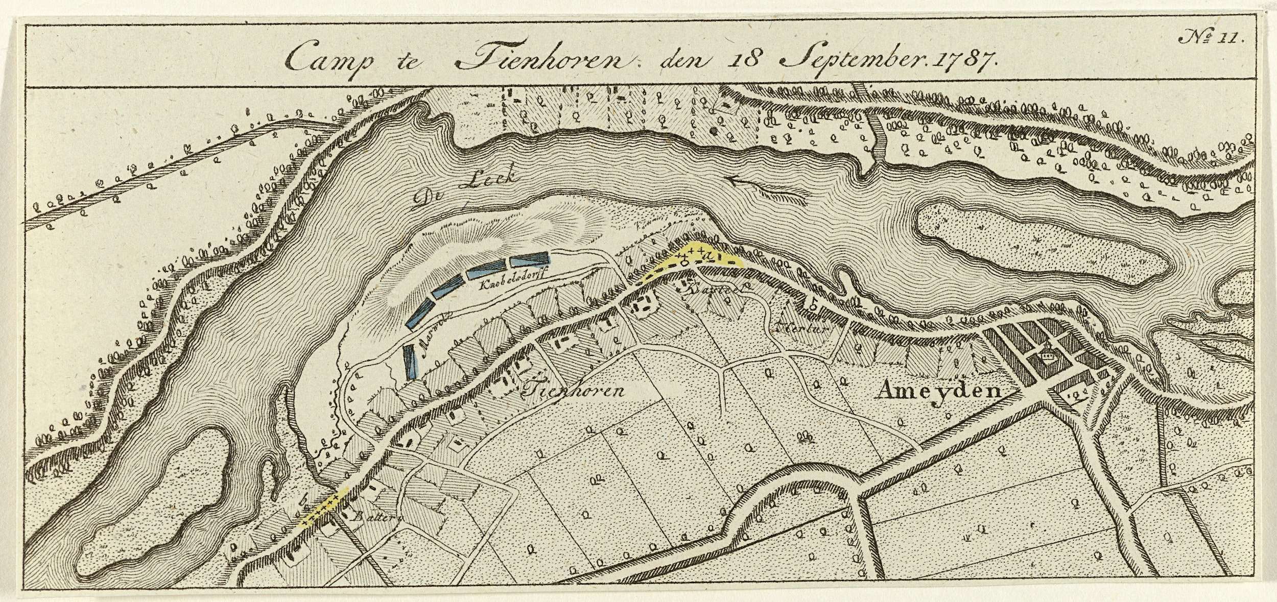 Kaart met de ligging van het kampement van de Pruisische troepen bij Tienhoven op 18 september 1787. Onderdeel van een groep van veertien genummerde kaartjes van de kampementen van de Pruisische troepen tijdens de interventie in de Nederlanden in september 1787.