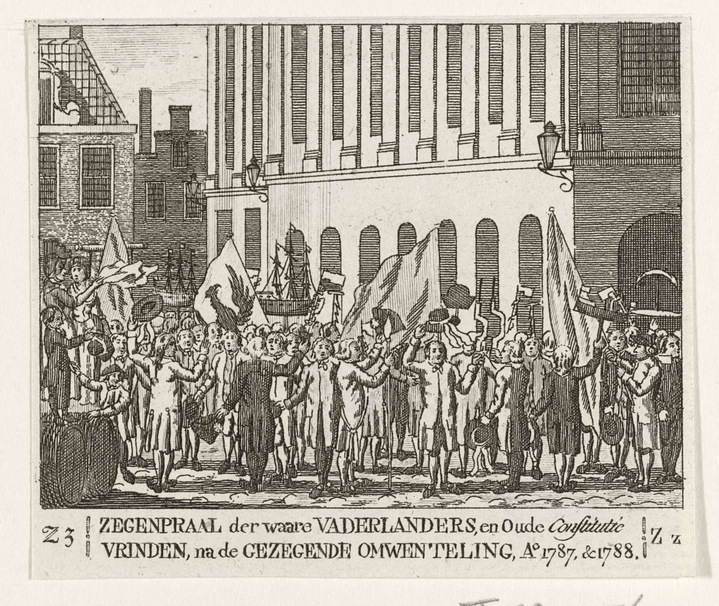 Viering in 1787 en 1788 van het herstel van de oude constitutie, het herstel van stadhouder Willem V in 1787. Plaatje behorend bij de letter Z uit een ABC boek.