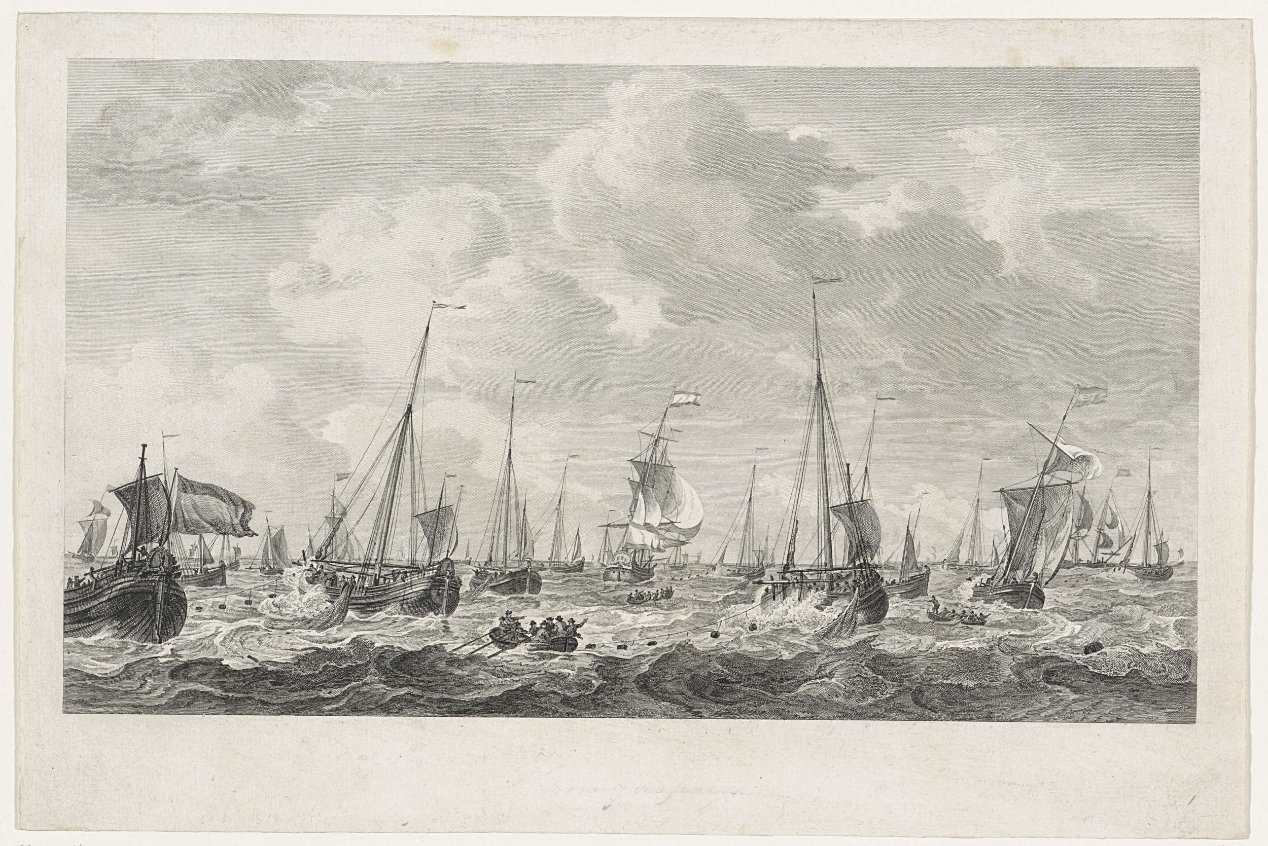 Vissersboten die op de Noordzee vissen op haring, 1781. Zie ook de pendant over de Walvisvangst.