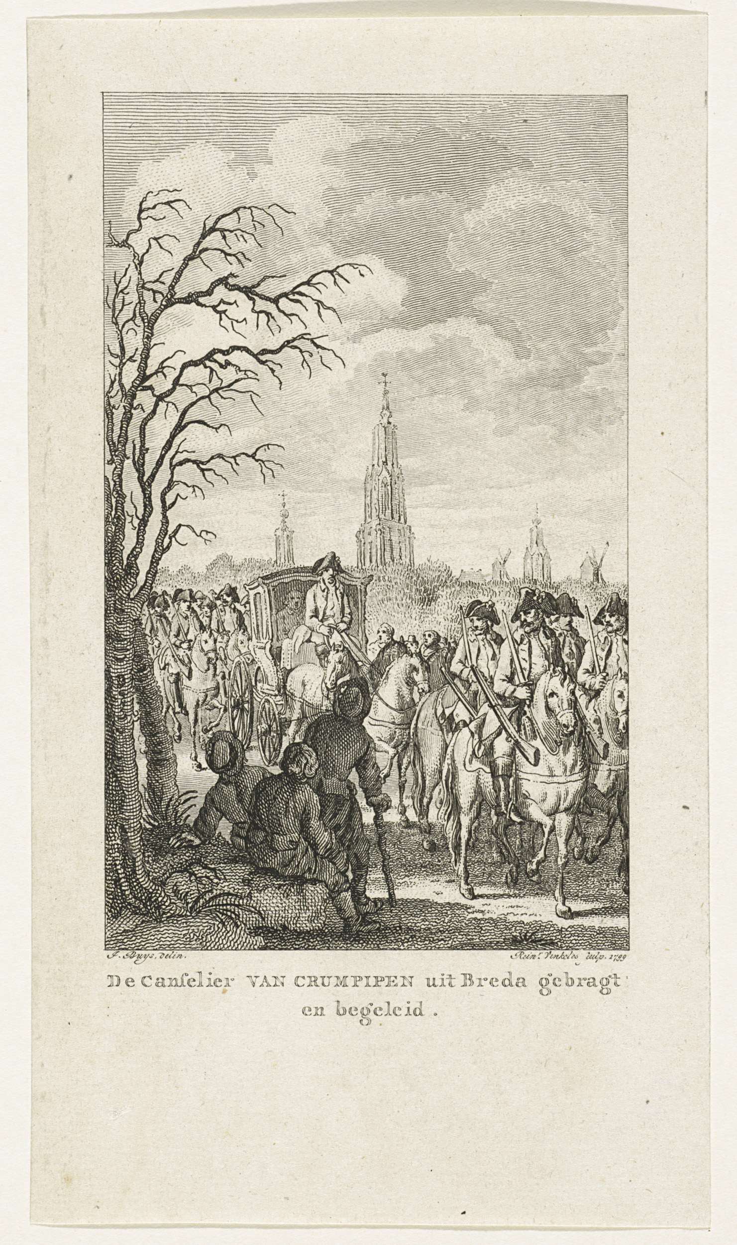 Kanselier J.A. van Crumpipen wordt per koets en onder begeleiding vanuit Breda naar Brabant teruggebracht, 14 november 1789.